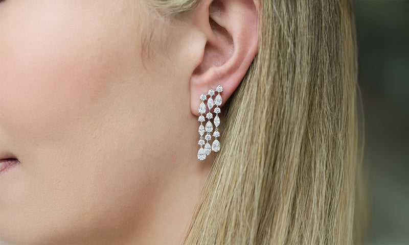 Each pair is expertly crafted in 18ct gold and adorned with radiant diamonds and vivid-coloured gemstones. Designed to move with elegance and catch the light, these drop earrings are a statement in refined luxury—perfect for elevating both day and evening looks.