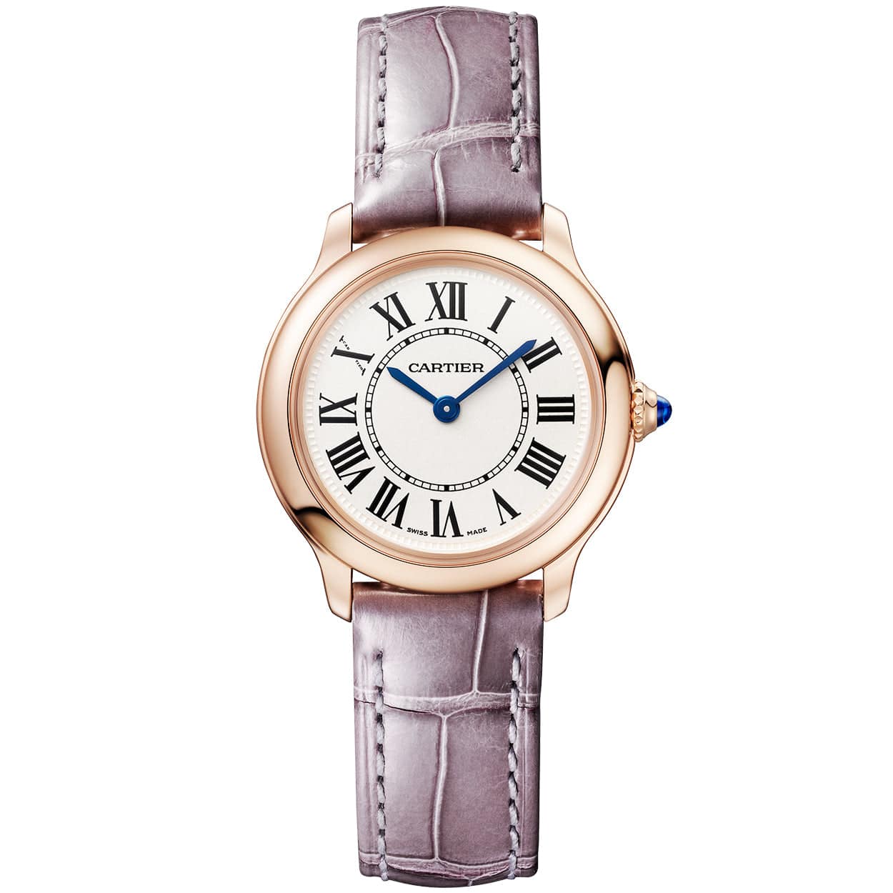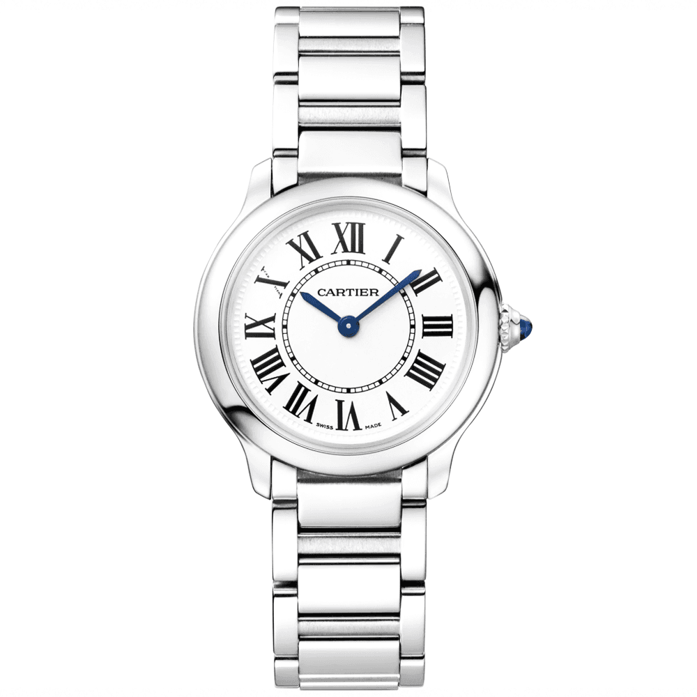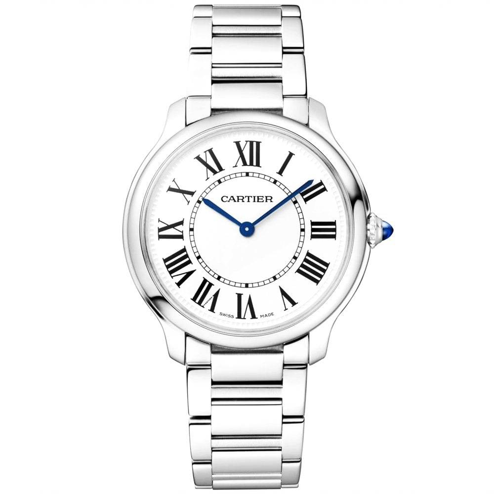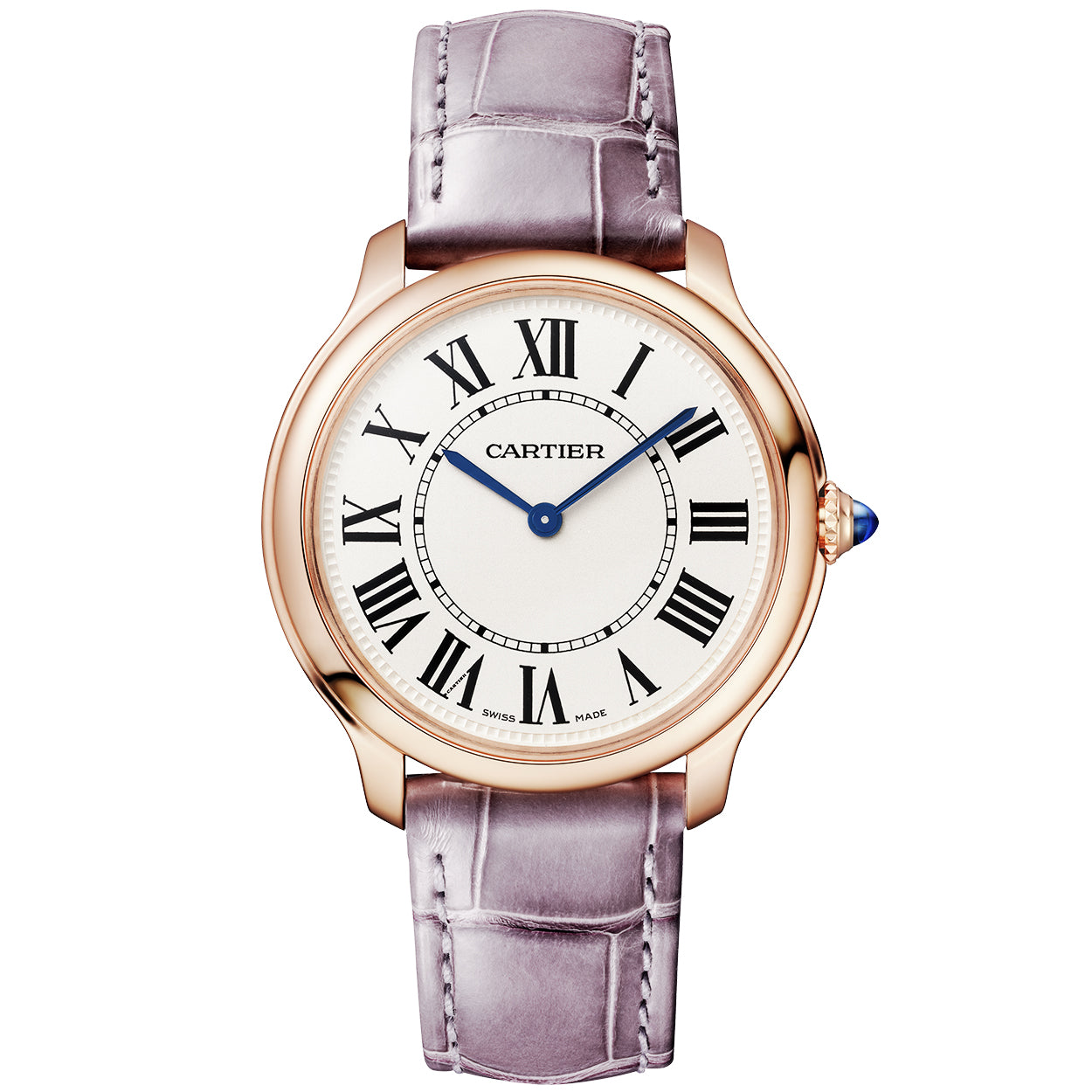 Cartier watches from the Ronde de Cartier collection are round in shape and upon first glance look similar to Ballon Bleu de Cartier watches. A closer look, however, reveals many differences both in detail and style but as a general rule, those who have been drawn to Ballon Bleu de Cartier watches in the past are certain to share the same fondness for these elegant models. Within the Ronde de Cartier watch collection lives the Ronde Solo watch - a timepiece often characterised by its silver circular brushed dial and beautiful blued steel hands. Large Roman numerals and a rail-track minute circle also join this list of distinguishable features belonging to the Ronde de Cartier watch collection, yet a selection of colourful interchangeable leather straps and bracelets add further flexibility to this line. Spanning from 29mm quartz Ronde de Cartier watches to 36mm automatic models for women and larger 42mm Ronde de Cartier watches for men - this broad and varied collection of elegant luxury timepieces is by far one of the company’s most diverse and innovative to choose from.