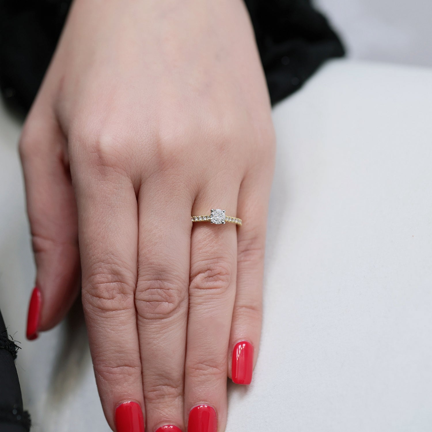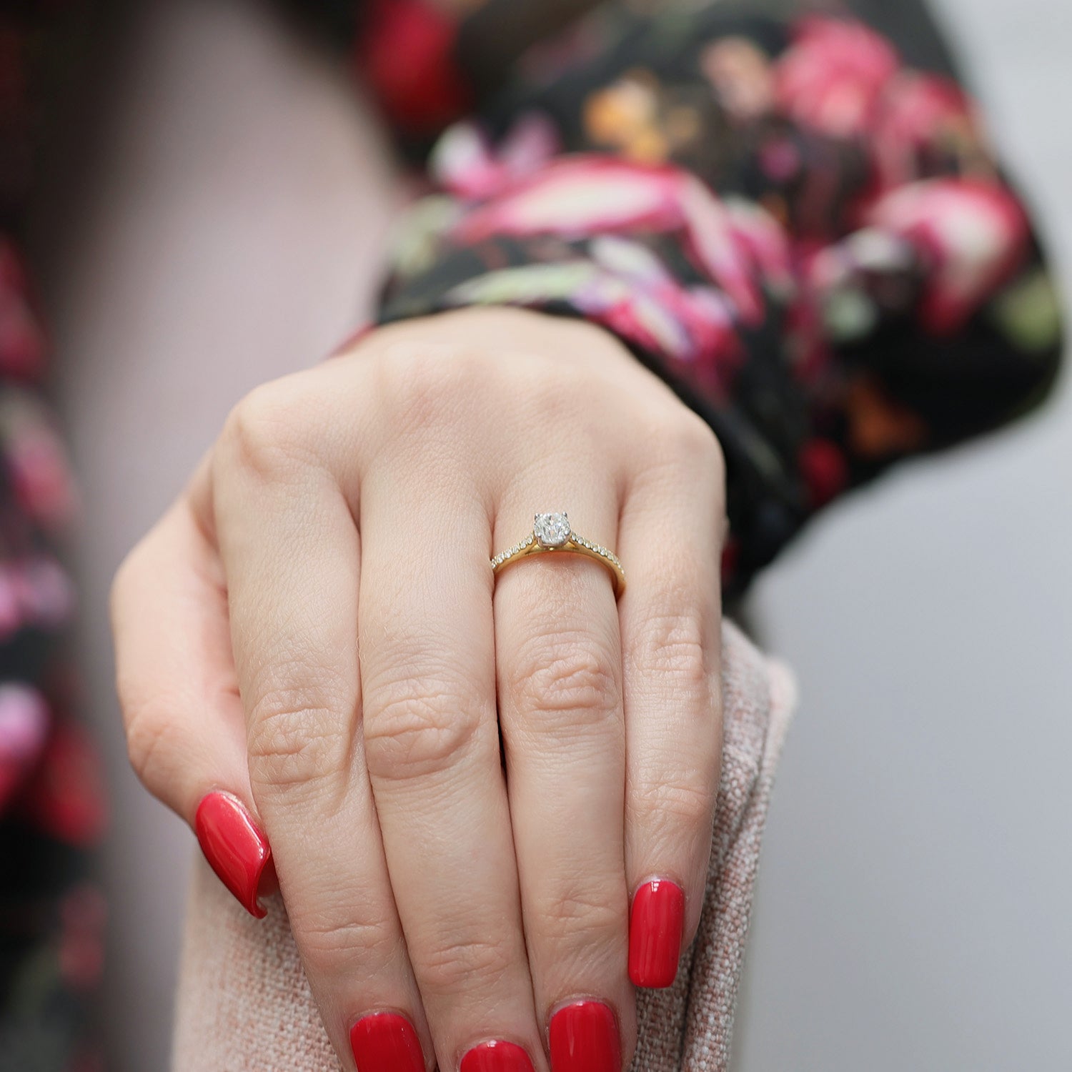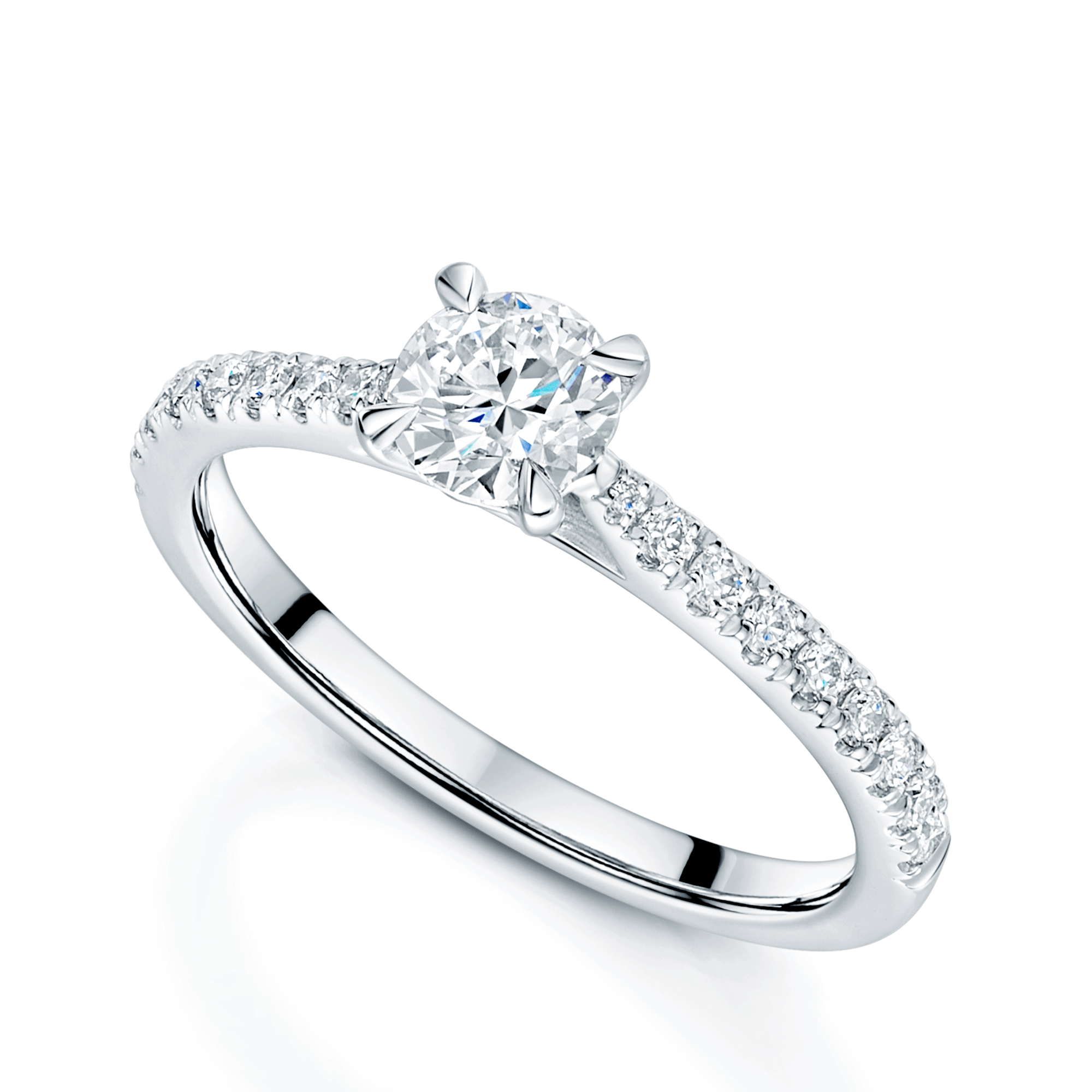 Discover our stunning collection of engagement rings with diamond-set shoulders, where added sparkle meets timeless elegance.