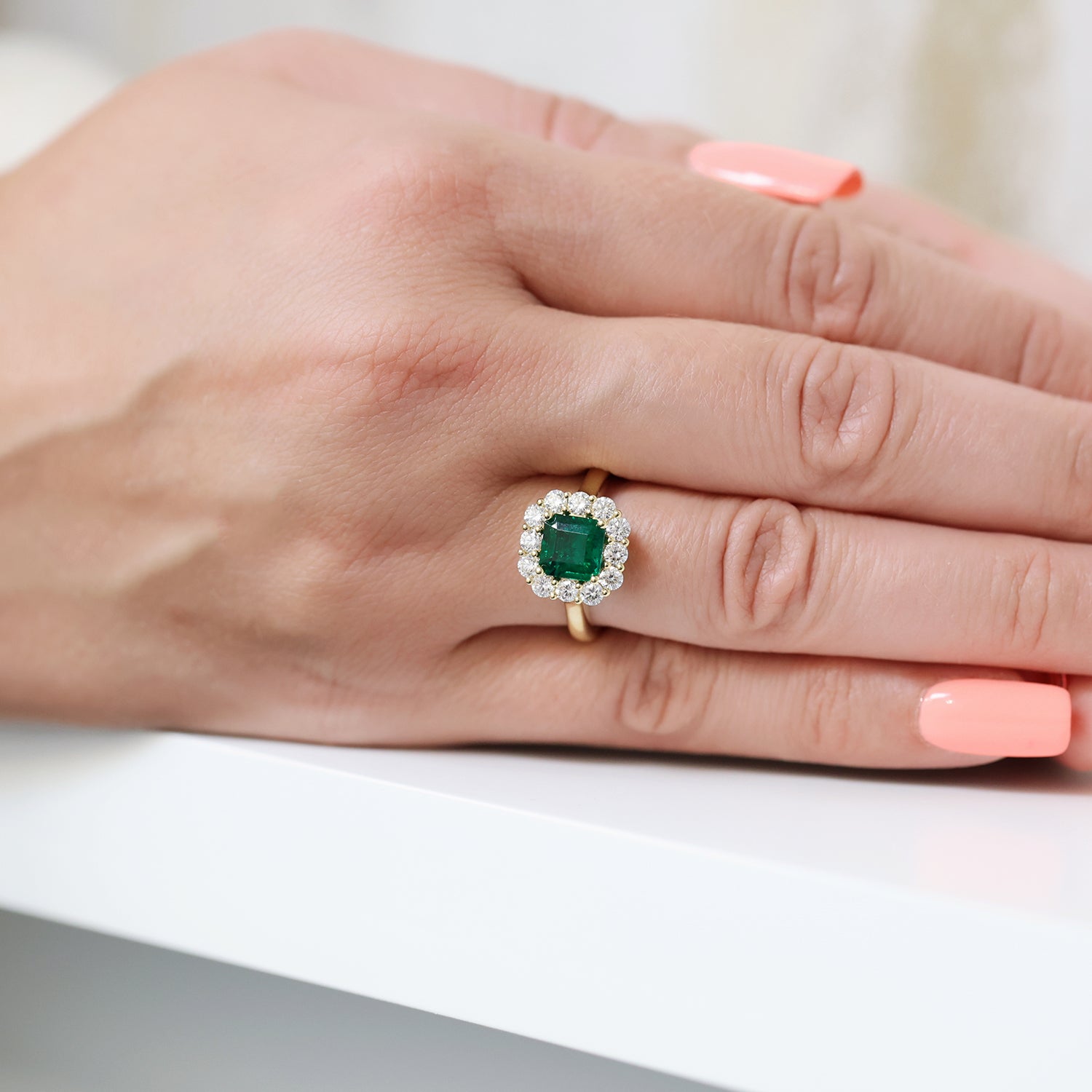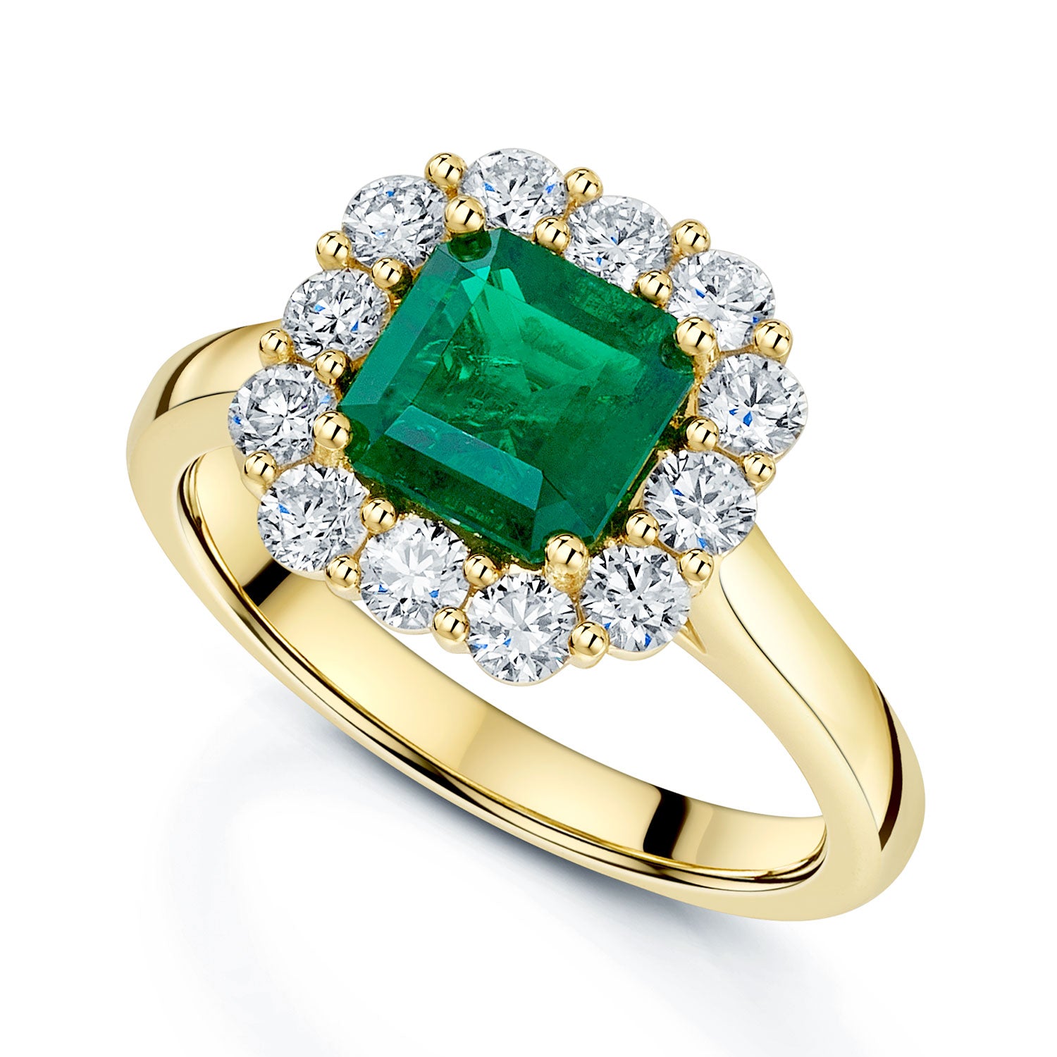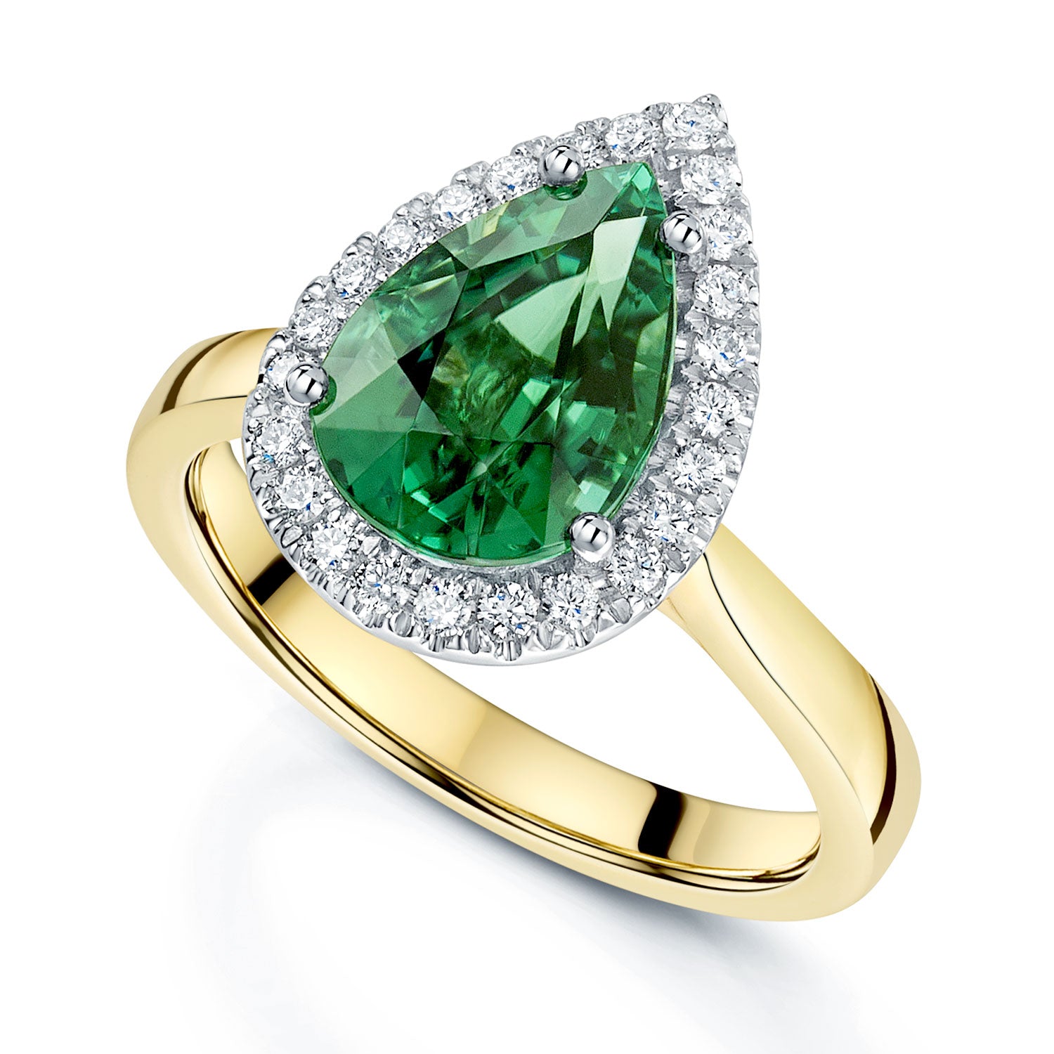 Berry's 18ct Yellow Gold Emerald Cut Green Tourmaline Dress Ring With A Diamond & Tsavorite Double Halo Dress Ring - Berry's Jewellers 18ct Yellow Gold Emerald Cut Green Tourmaline Dress Ring With A Diamond & Tsavorite Double Halo Dress Ring