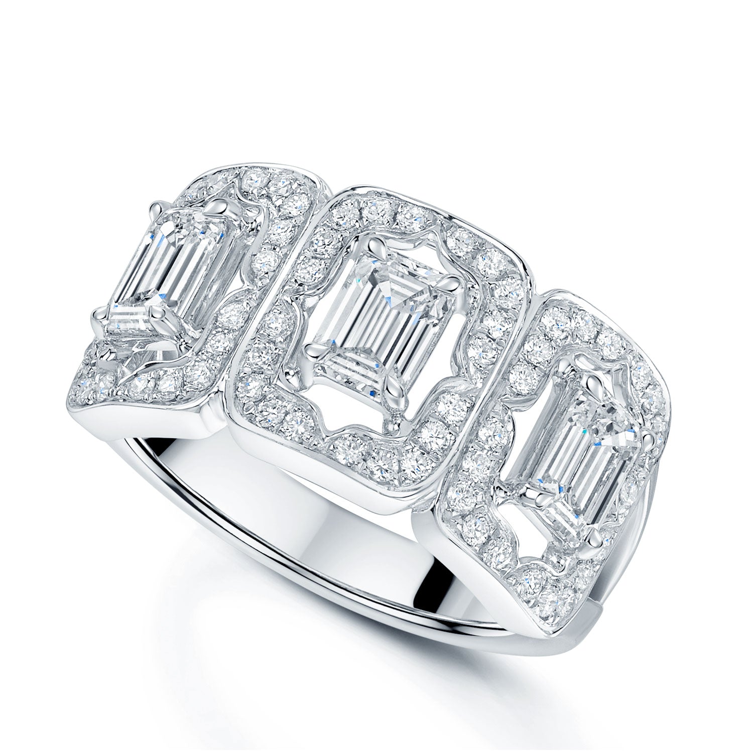 Berry's Platinum Yellow Diamond Three Stone Diamond Halo Ring - Berry's Jewellers Berry's Platinum Yellow Diamond Three Stone Diamond Halo Ring - Berry's Jewellers