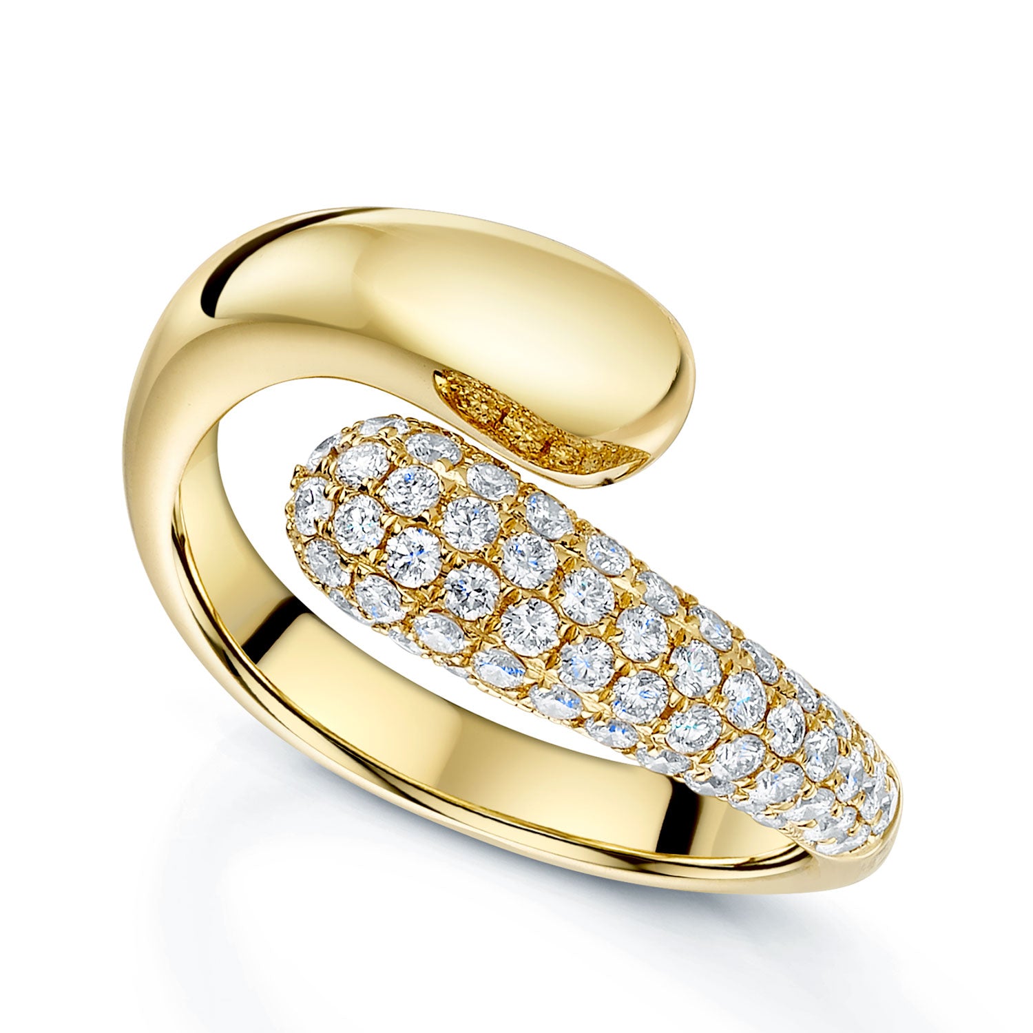 Pavé-set diamonds are intricately placed across the surfaces of Ember pieces, creating a radiant, light-catching brilliance with every movement.