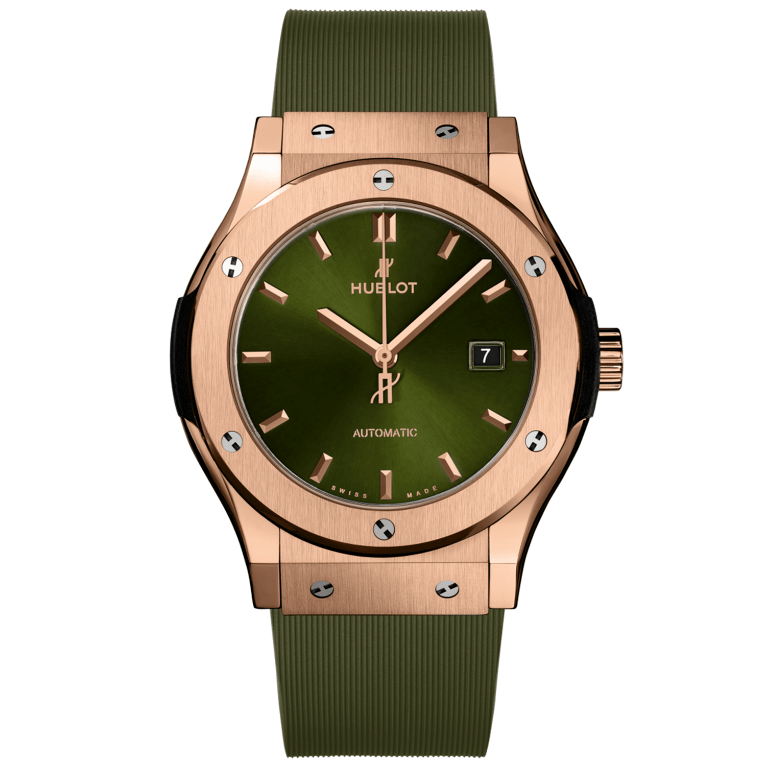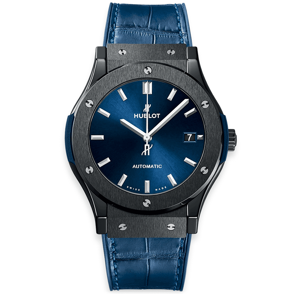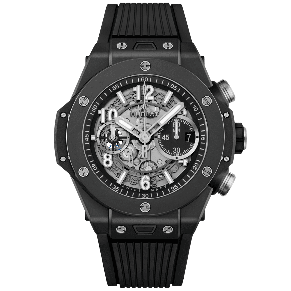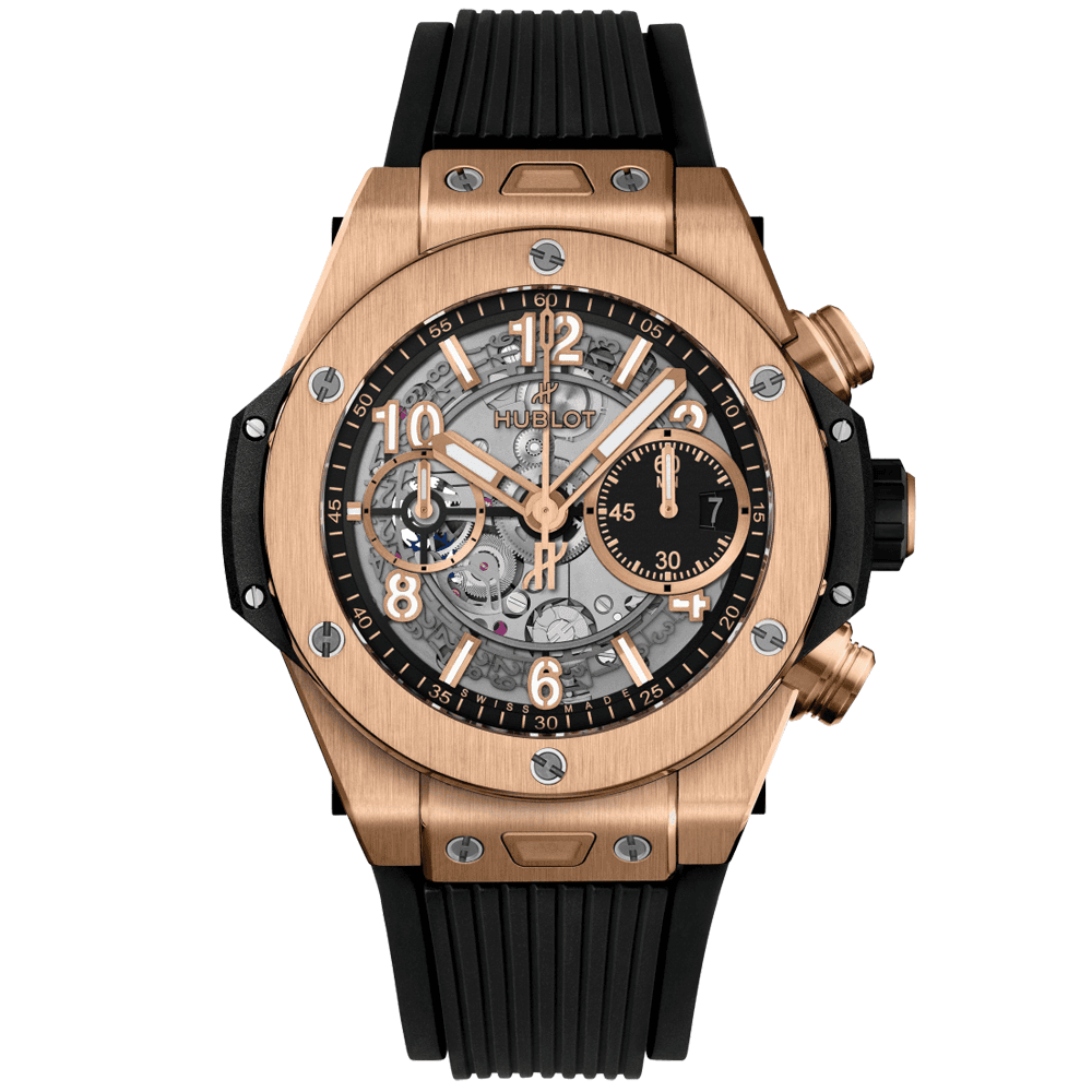 Hublot’s very first watch design was inspired by a ship’s porthole and featured the now-iconic screws on the bezel that have gone on to define Hublot watches in a very prominent way. The company also produces its own proprietary materials such as King Gold - a yellow gold and ceramic alloy that melds the luxurious and sumptuous finish of yellow gold with the superior scratch resistance of ceramic. Other watch cases have been crafted from sapphire crystal, textile, titanium, carbon and even concrete.