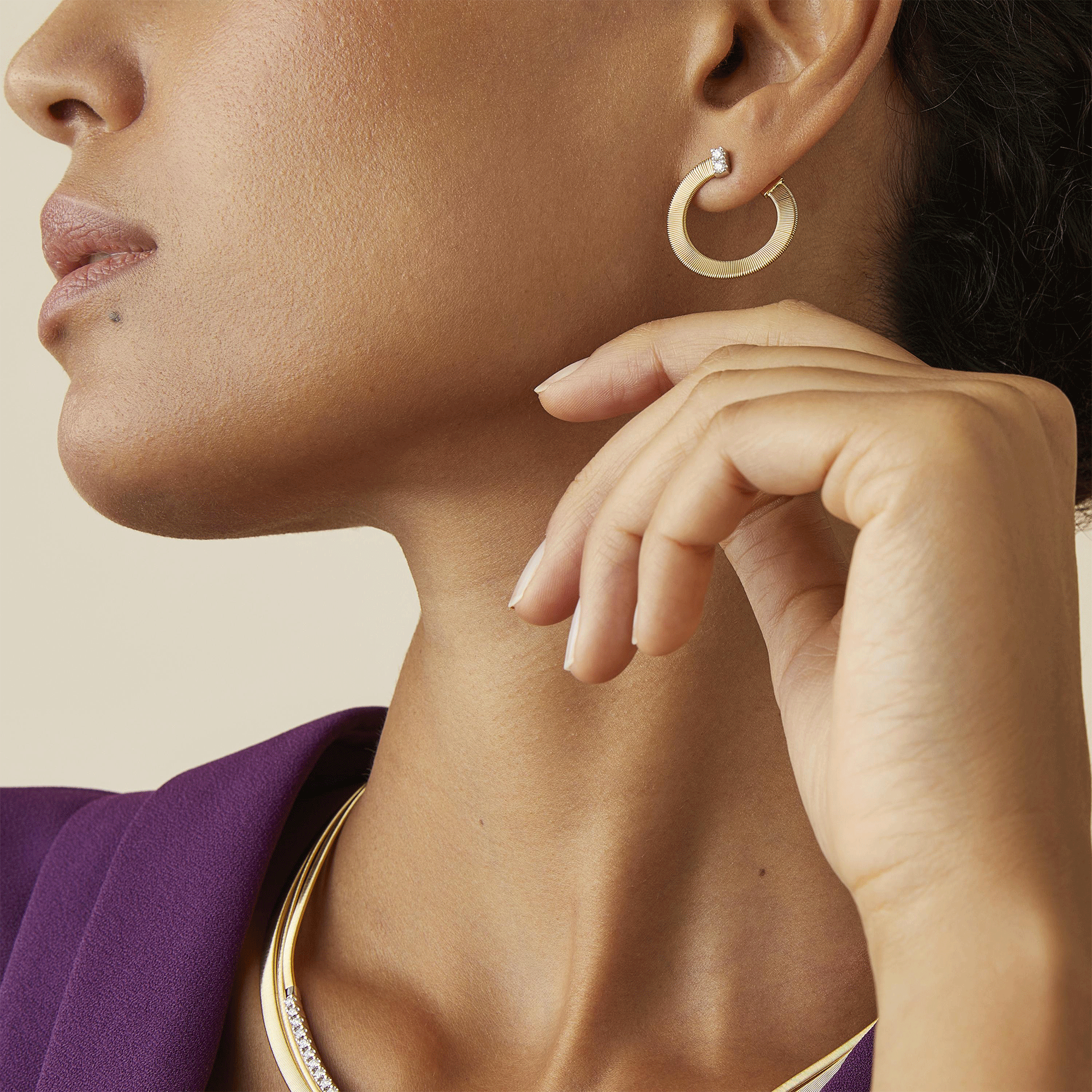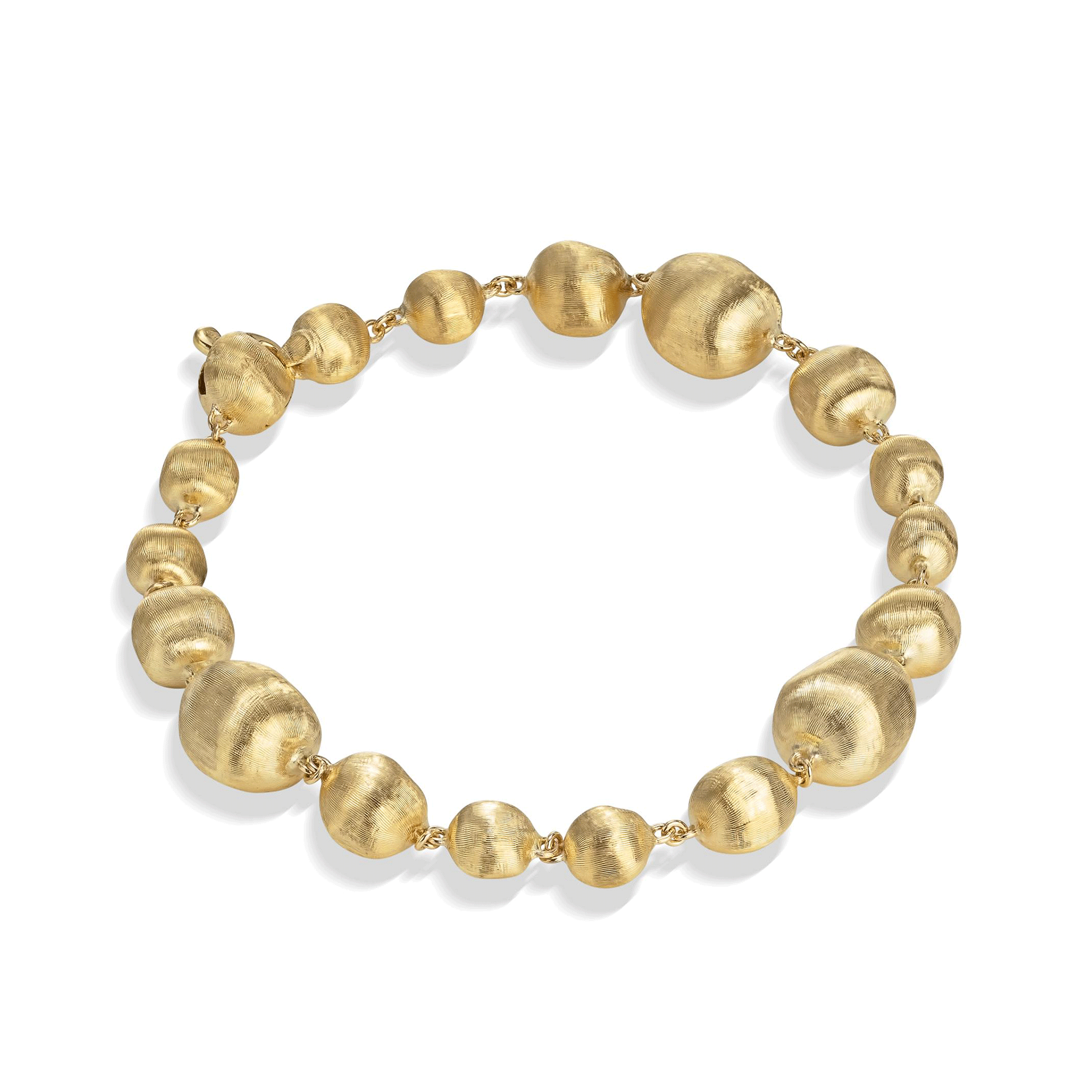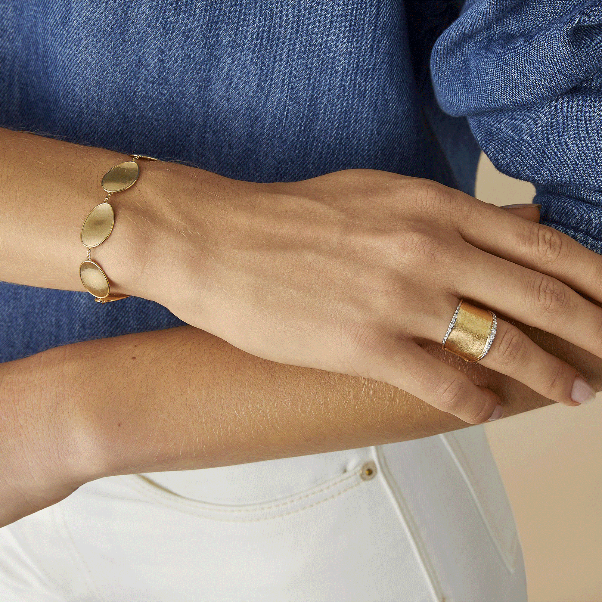 the gold is specially finished to glow like silk? Marco Bicego uses a traditional bulino tool (an ancient Florentine technique) to engrave the gold by hand, giving it a matte, brushed finish that’s soft and radiant