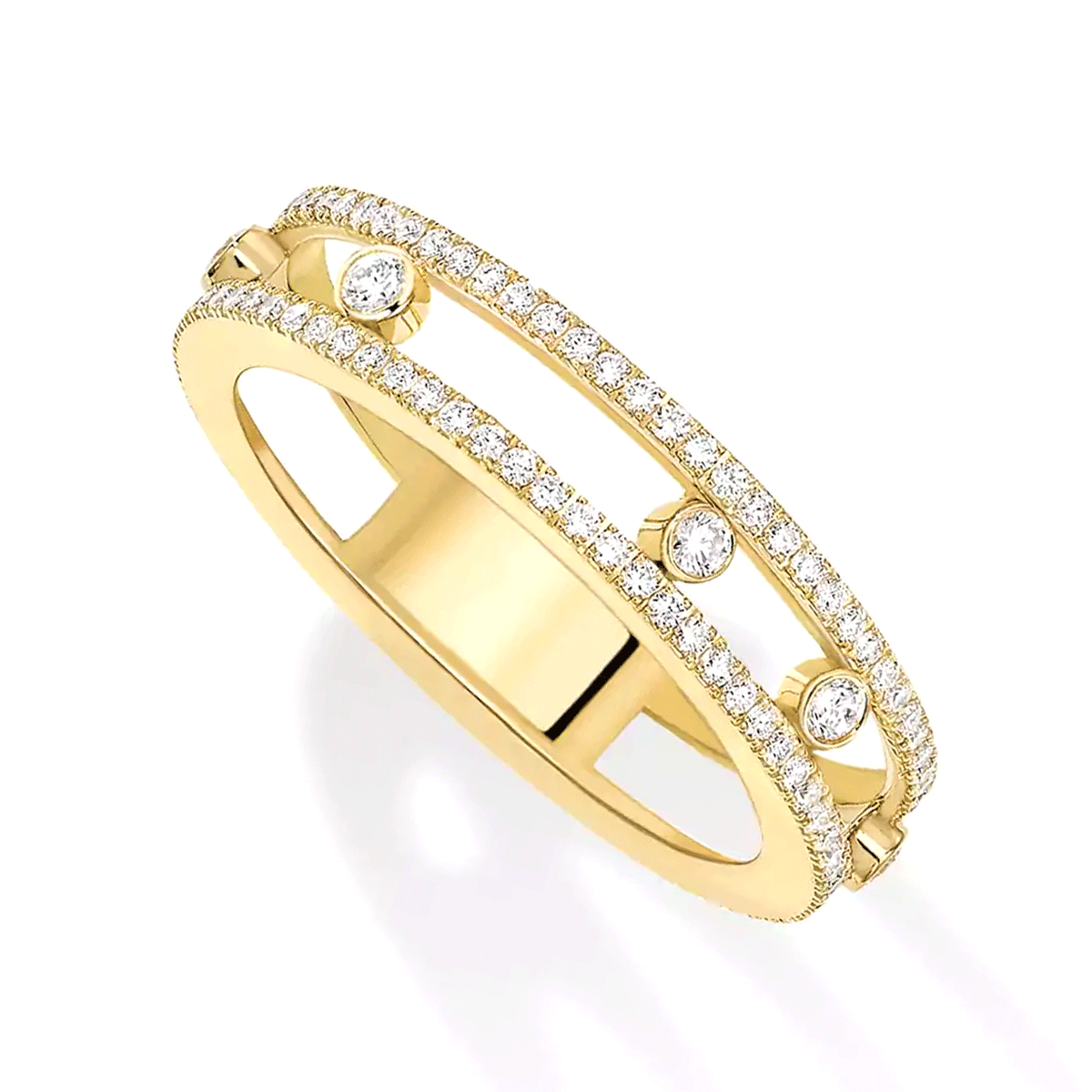 The Messika Move jewellery creations are undoubtedly what sets this innovator apart from other manufacturers in the industry. The range is home to a line of influential creations that incorporate the brand’s moving diamond concept. Single round brilliant-cut diamonds are nestled inside smooth rub-over settings to create a contemporary element inside an oblong metal structure. Whether opting for a white, rose or yellow gold creation, these moving diamonds roll within their perfectly crafted tracks, picking up the light uniquely and creating a breath-taking display of light and brilliance as they move.