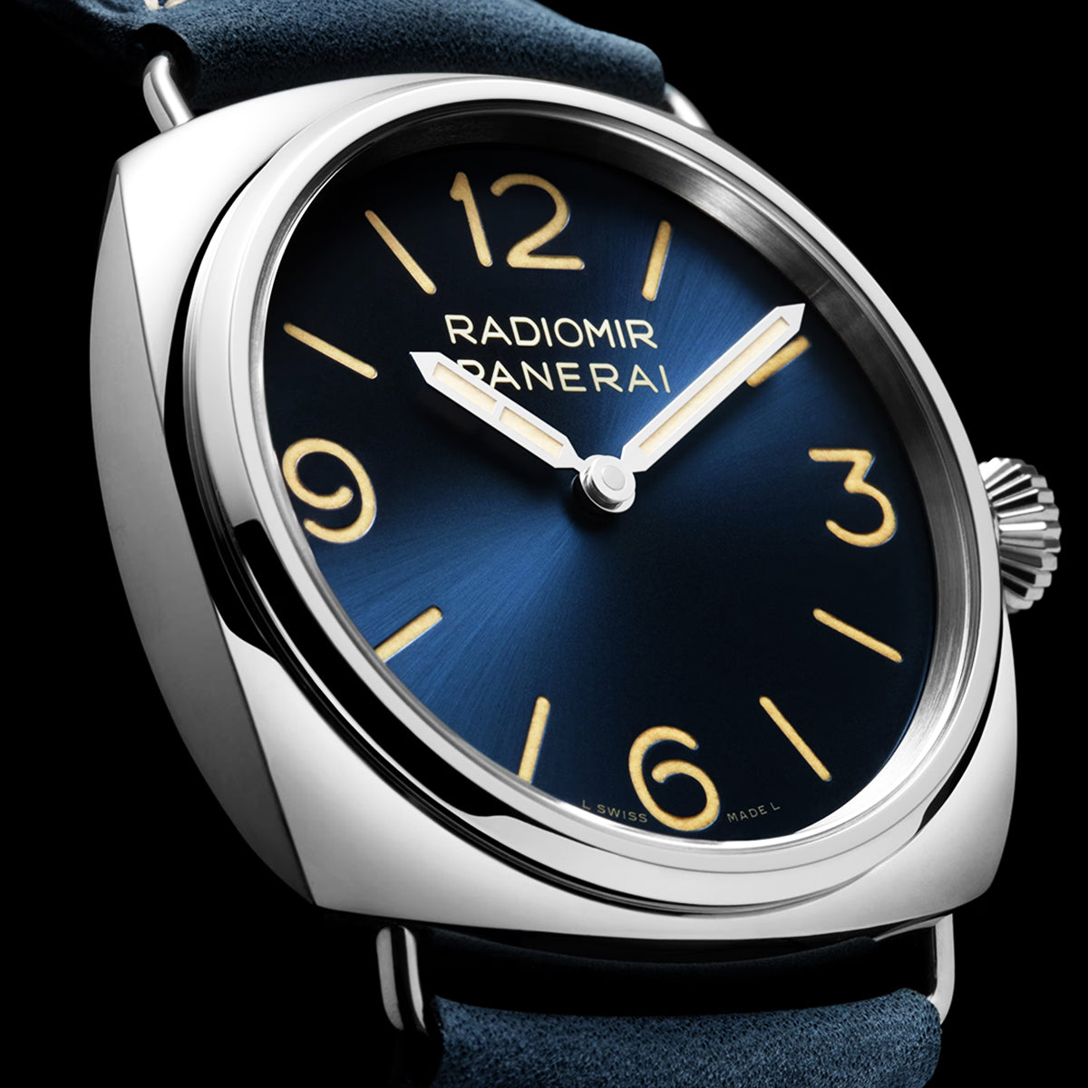 Panerai Radiomir watches answered the needs of the Royal Italian Navy at a time when a robust, sturdy and powerful timepiece was essential to assist the seamen with legibility and accuracy in some of the most compromised weather conditions. Today the designs retain many of the same striking features, such as the rounded cushion-shaped cases, the simple, vast dial layouts and the hand-wound mechanical movement planted securely into the centre of the case.
