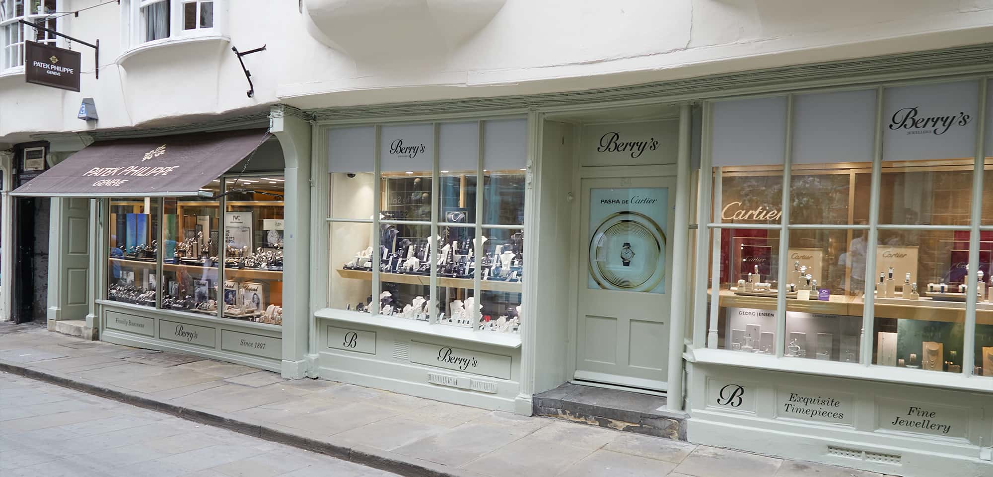 Just like the city itself, our York store is charming, and our warm and friendly staff will help you to choose a watch or jewellery piece which you will be proud to wear for years to come. We have a wide range of jewellery and watches available online, but we know that customers often want to be stunned in person. The store is an authorised dealer of luxury watch manufacturers including Cartier, Jaeger Le-Coultre, IWC, CHANEL, Glasshutte Original, Grand Seiko, TAG Heuer, Nomos Glashutte & Longines. In addition, the store retails our own Berry's Jewellery and pieces from jewellery brands including FOPE, Mikimoto, GUCCI & George Jensen.