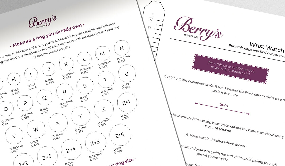 Heading into one of our luxurious showrooms and having your ring size measured is the most accurate way for us to determine your ring size. We know however, that this isn't always an option. If this is the case please use the ring sizer below, to either measure a ring you already own, or use our ring size band to find your perfect size.