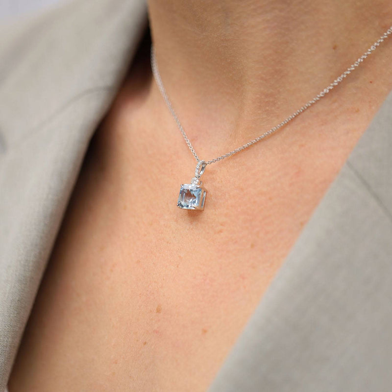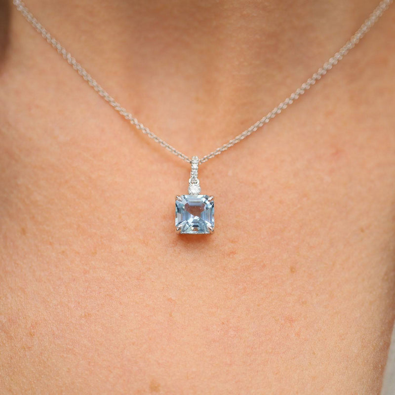 18ct White Gold Square Cut Aquamarine And Diamond Pendant