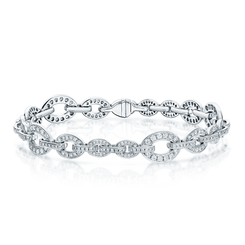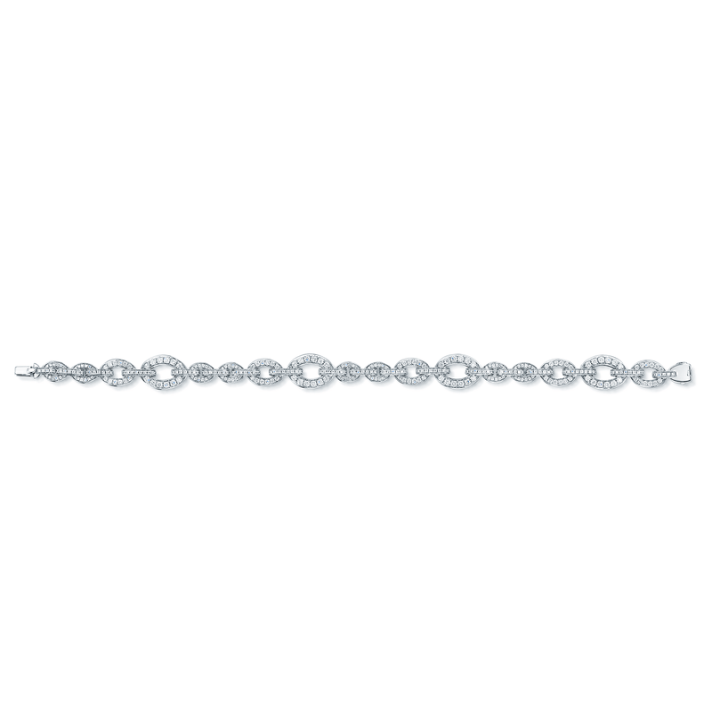 18ct White Gold Diamond Pave Set Graduating Oval Link And Bar Bracelet, LVBR6068-1
