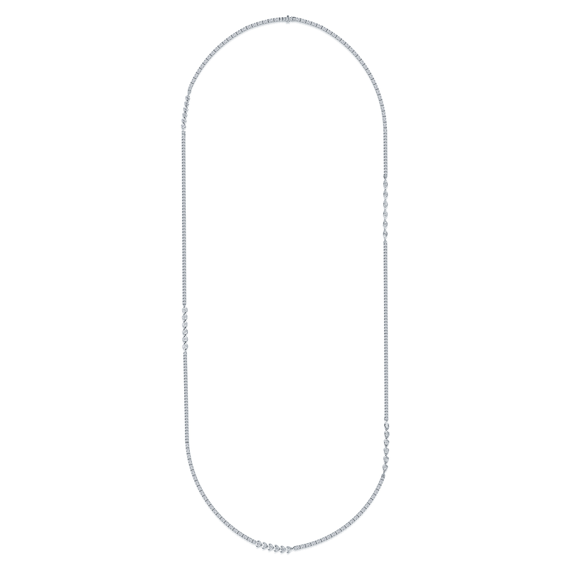 18ct White Gold Mixed Cut Diamond Long Fancy Necklet