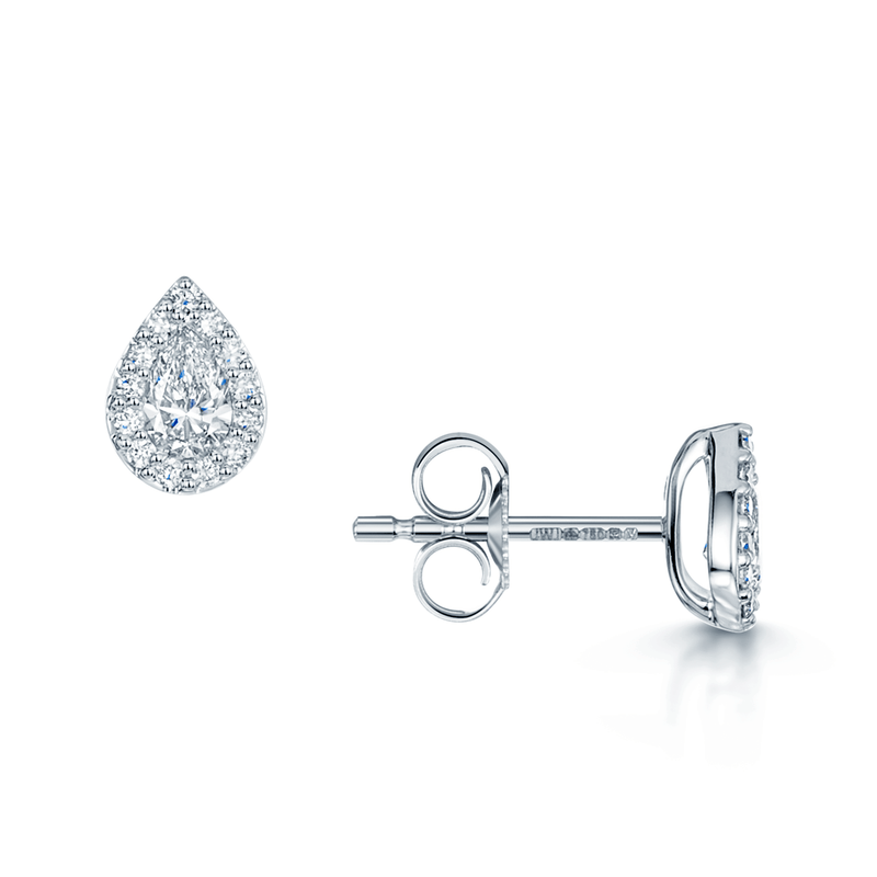 18ct White Gold Pear Cut Diamond 0.40ct Halo Stud Earrings