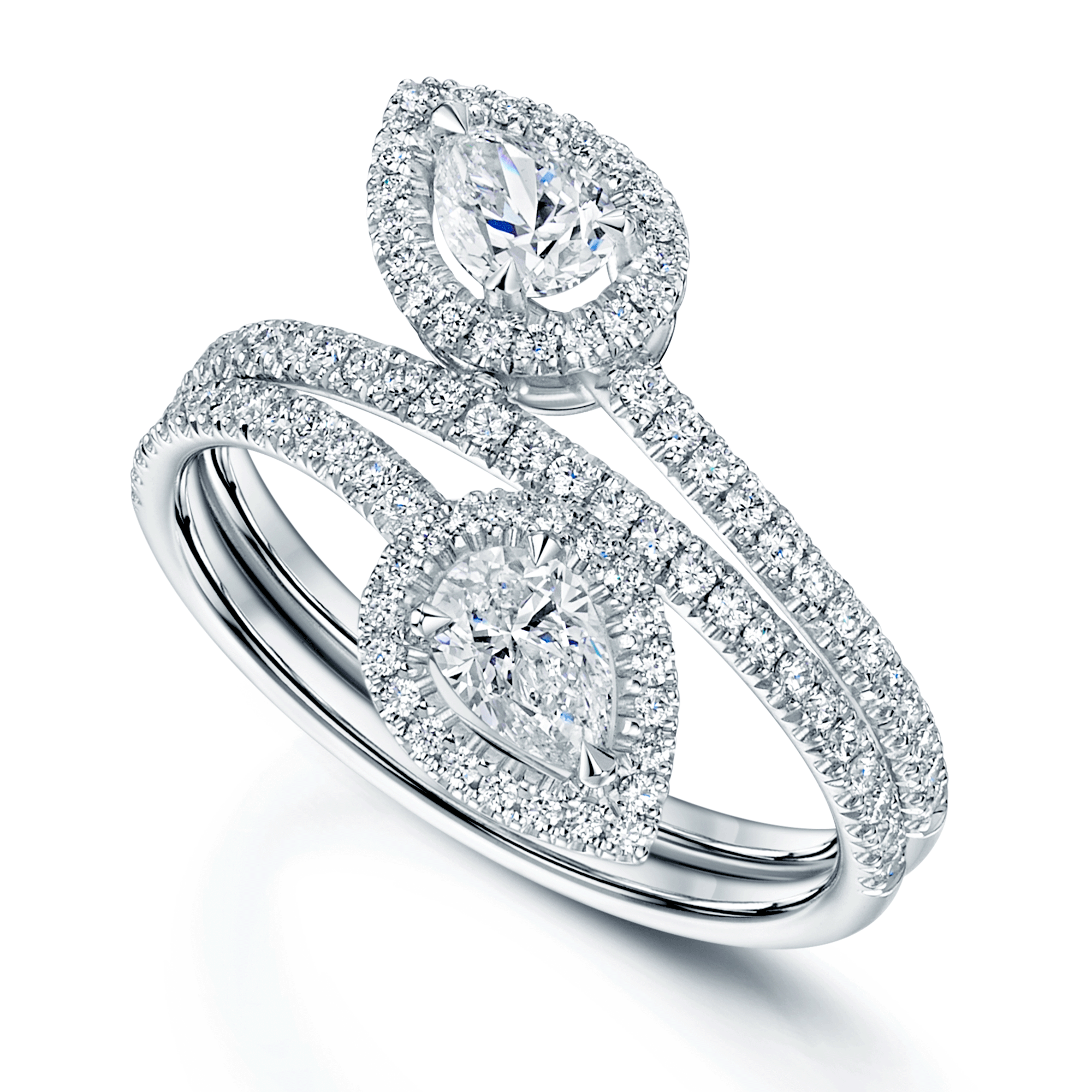 18ct White Gold Pear Cut Diamond Halo Set Cross Over Ring