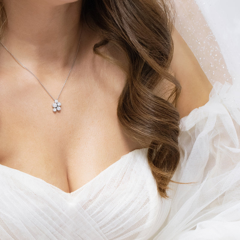 18ct White Gold Round Brilliant Cut Diamond Bubble Rub Over Pendant