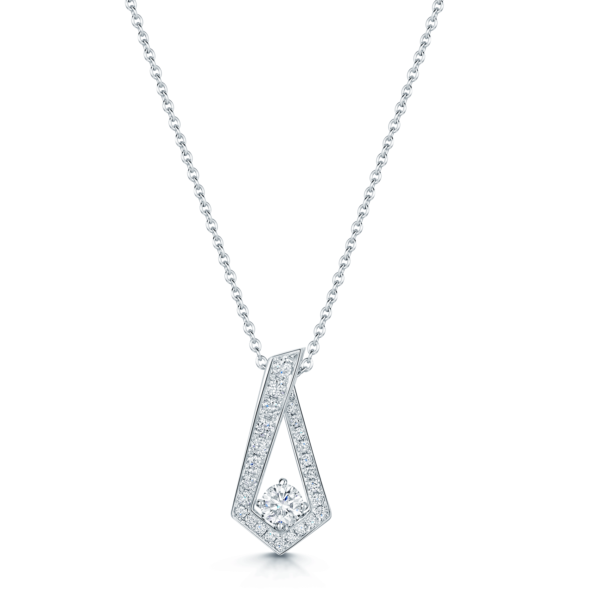18ct White Gold Round Brilliant Cut Diamond Necklace Suspended In A Kite Shaped Halo, V26555DP-W