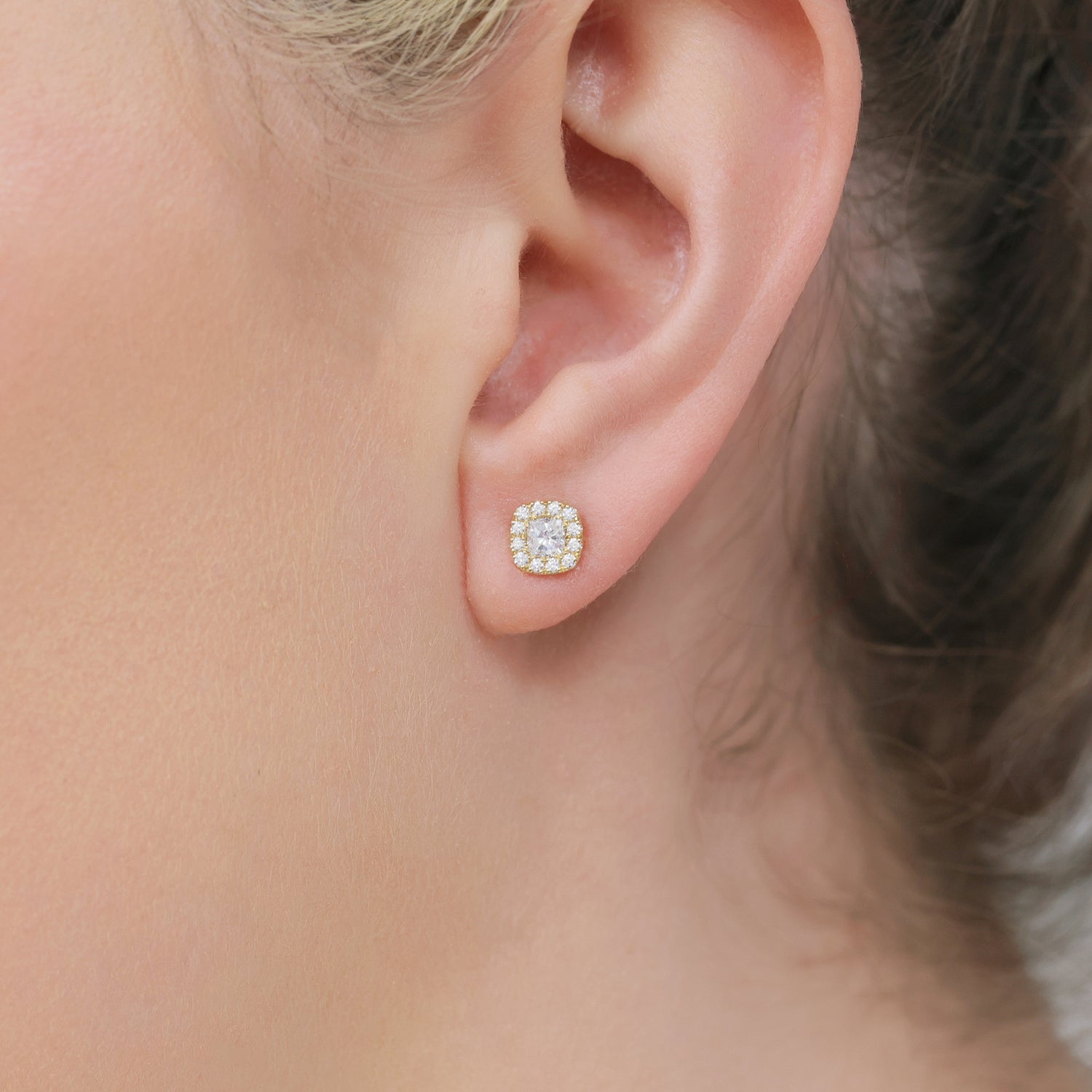 18ct Yellow Gold Cushion Cut Diamond Halo Stud Earrings