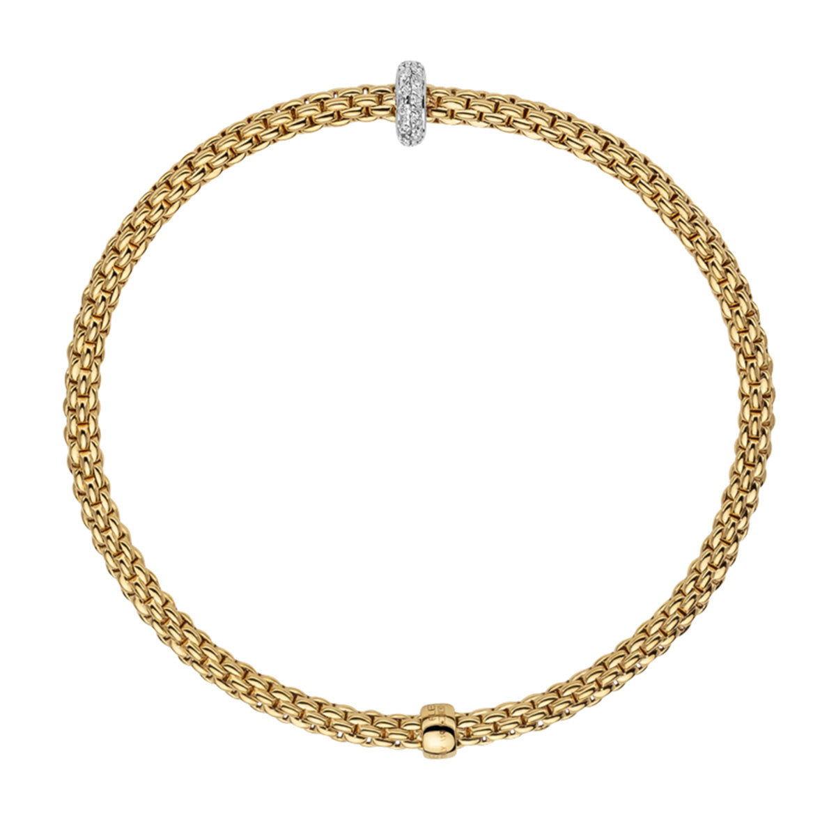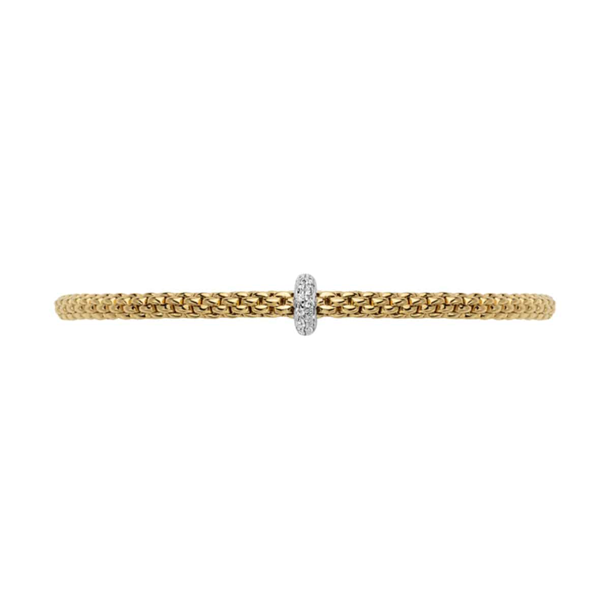 FOPE Prima 18ct Yellow Gold Bracelet With Pave Diamond Set Rondel, 74508BX_BB_G_XBX
