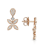18ct Rose Gold Flower Drop And A Hoop Earring With Diamond Pave set Petals LVB9896W-RG.
