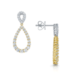18ct White And Yellow Gold Round Brilliant Cut Diamond Pear Shaped Drop Earrings