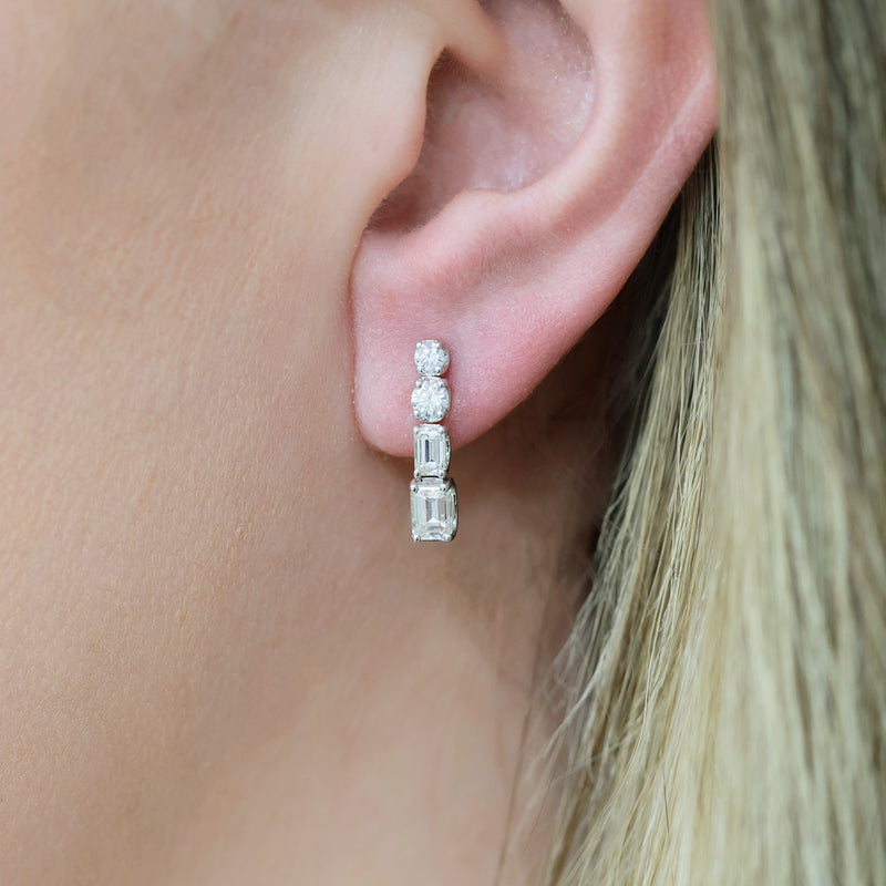 18ct White Gold Brilliant and Emerald Cut Diamond Drop Earrings