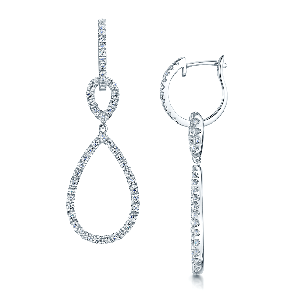 18ct White Gold Diamond Pear Shape Loop Earrings