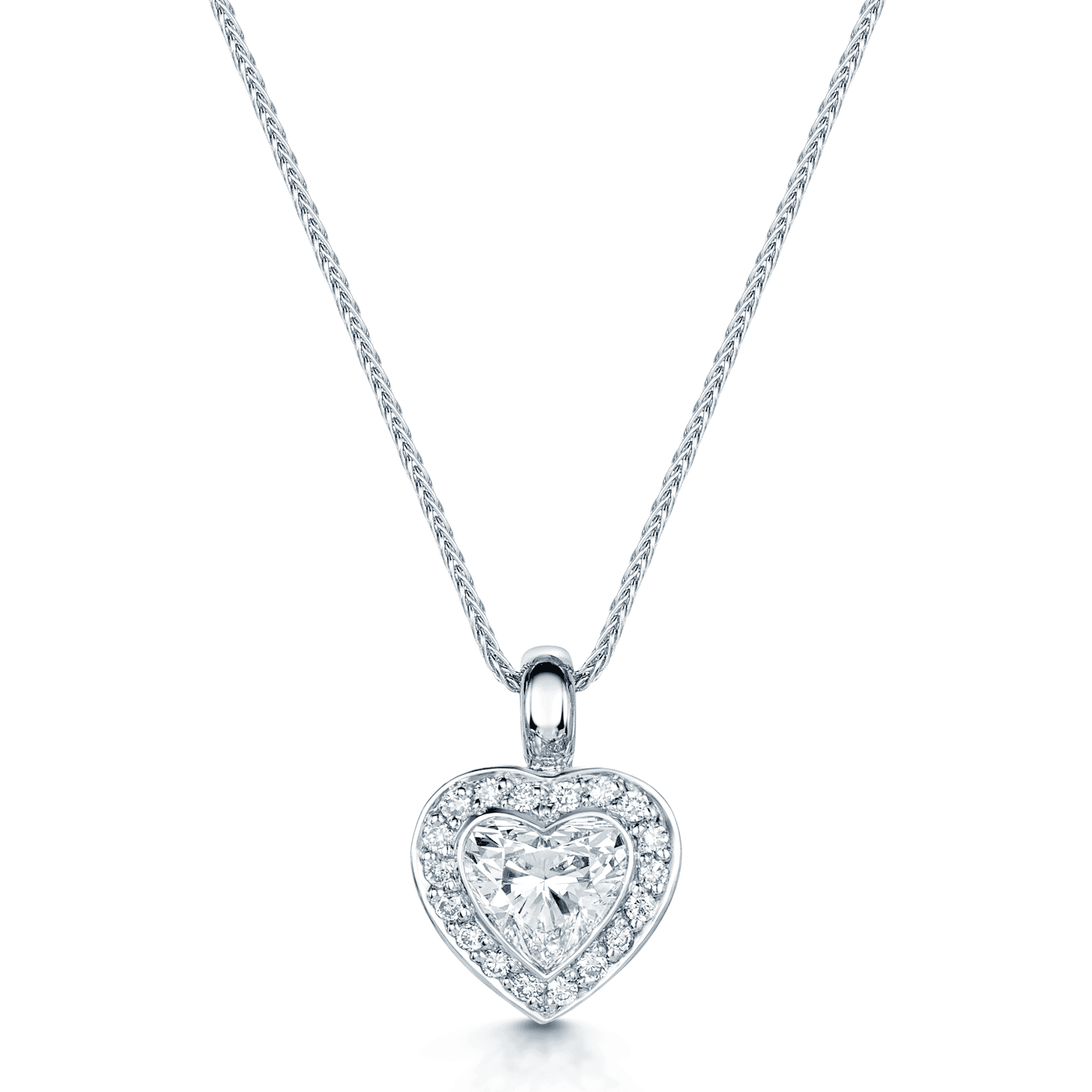 18ct White Gold Heart Shaped Diamond Pendant in a Pave Set Surround