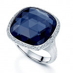 18ct White Gold Large Cushion Cut Haematite Cabachon & Diamond Pave Halo Ring