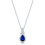 18ct White Gold Pear Shape Blue Sapphire & Round Brilliant Cut Diamond Halo Pendant V20570SDP-W