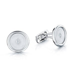 18ct White Gold Princess Cut Diamond Satin And Polished Finish Round Cufflinks