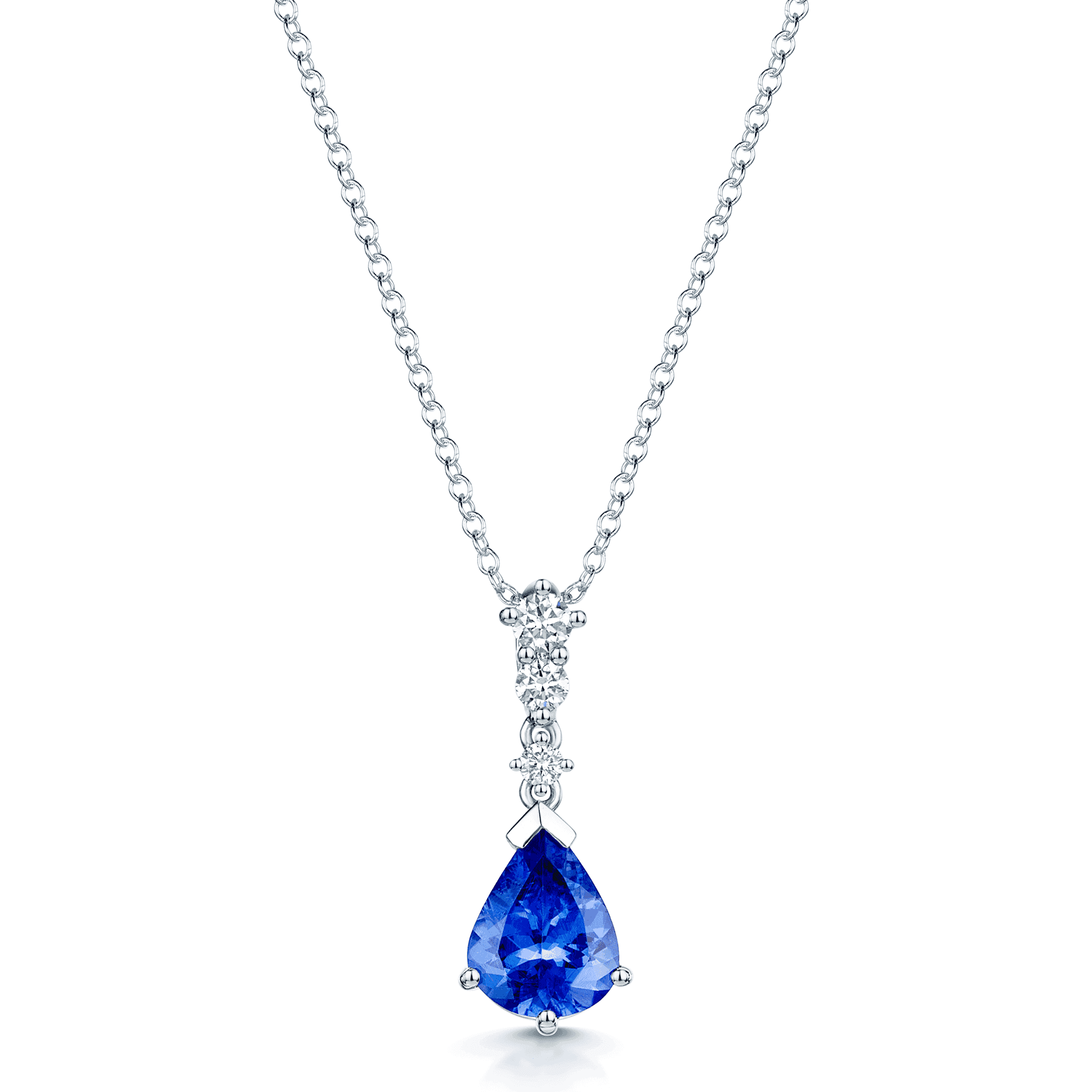 18ct White Gold Round Brilliant Cut Diamond And Pear Cut Tanzanite Pendant