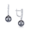 18ct White Gold Tahitian Black Pearl and Diamond Drop Earrings