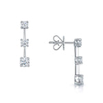 18ct White Gold Three Stone Diamond Bar Set Drop Earrings