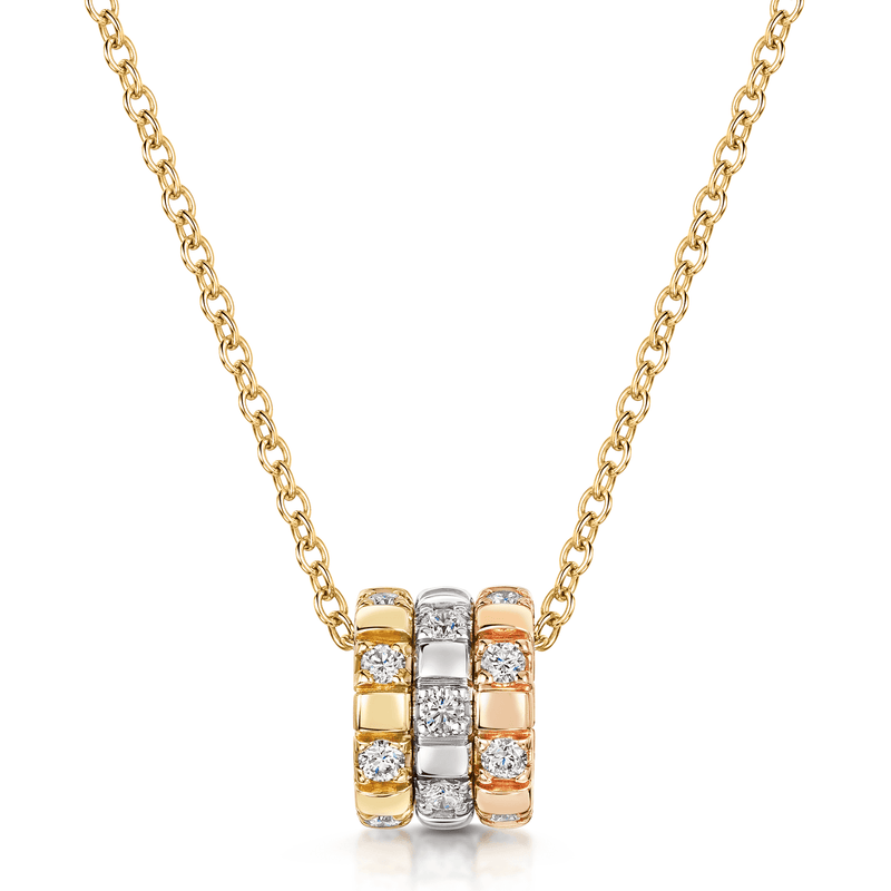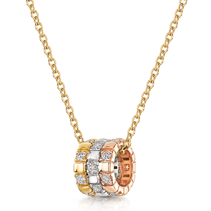 18ct White, Rose & Yellow Gold Round Brilliant Cut Diamond Barrel Pendant