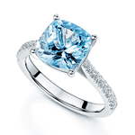 Platinum Cushion Cut Aquamarine Ring With Diamond Set Shoulders V22840AQDR-PT