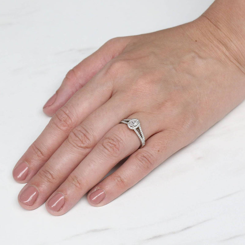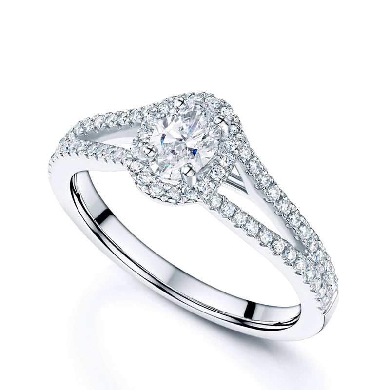 - Beautiful oval-cut diamond solitaire halo ring design from Berry’s Jewellers