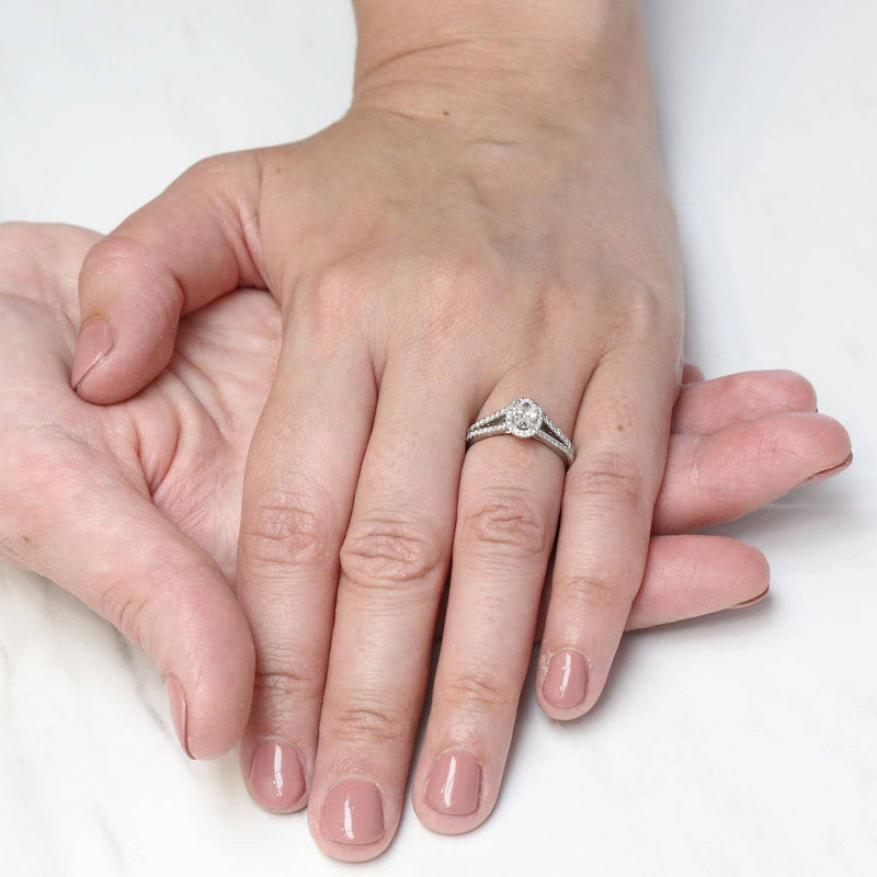 - Oval-cut GIA-certified diamond held inside a claw setting