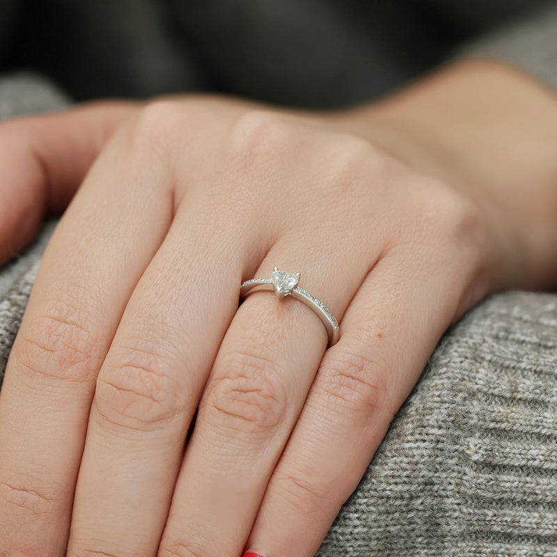 Platinum Heart Cut Diamond 0.40ct Solitaire Ring with 0.10ct Diamond Pave Set Shoulders