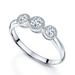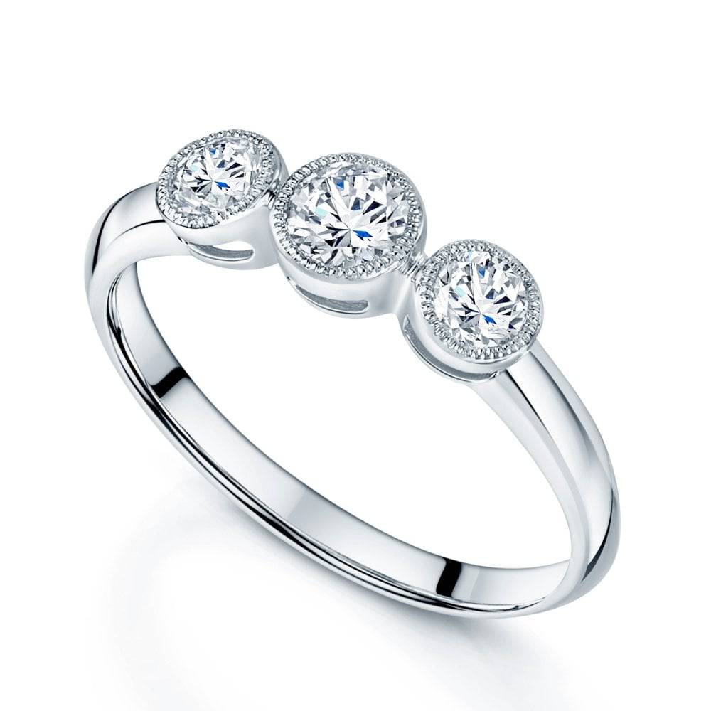 Platinum Round Brilliant Cut Diamond Millgrain Rubover Trilogy Ring