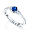- A stunning sapphire and diamond three stone ring from Berry’s - Total Sapphire weight 0.46ct - Total diamond weight 0.35ct - Crafted from polished platinum - Featuring an round cut Sapphire stone - Gemstone held inside a classic four claw setting - Accompanied by two pear cut diamonds on either side - Featuring diamond set shoulders This beautiful sapphire and diamond three stone ring has been crafted from luxurious platinum. The centre gemstone is a gorgeous round cut sapphire which is held into place by a timeless four claw setting. On either side of the sapphire sits a pear cut diamond to add maximum sparkle and elegance to this stunning three stone ring design. Together the pear cut diamonds and the deep blue Sapphire gemstone create a breath-taking display of light and colour. Hugging the circumference of the lady’s finger is a plain platinum band with diamond set shoulders that will sit effortlessly beside other staple pieces of jewellery such as an engagement ring or wedding band. Several sapphire and diamond jewellery designs can be found in our online gemstone jewellery collections here at Berry’s, perfect for accompanying this unique ring design. The round sapphire stone celebrated in this gemstone and diamond halo ring measures a total weight of 0.46ct . The diamonds accumulate a total weight of 0.35ct.