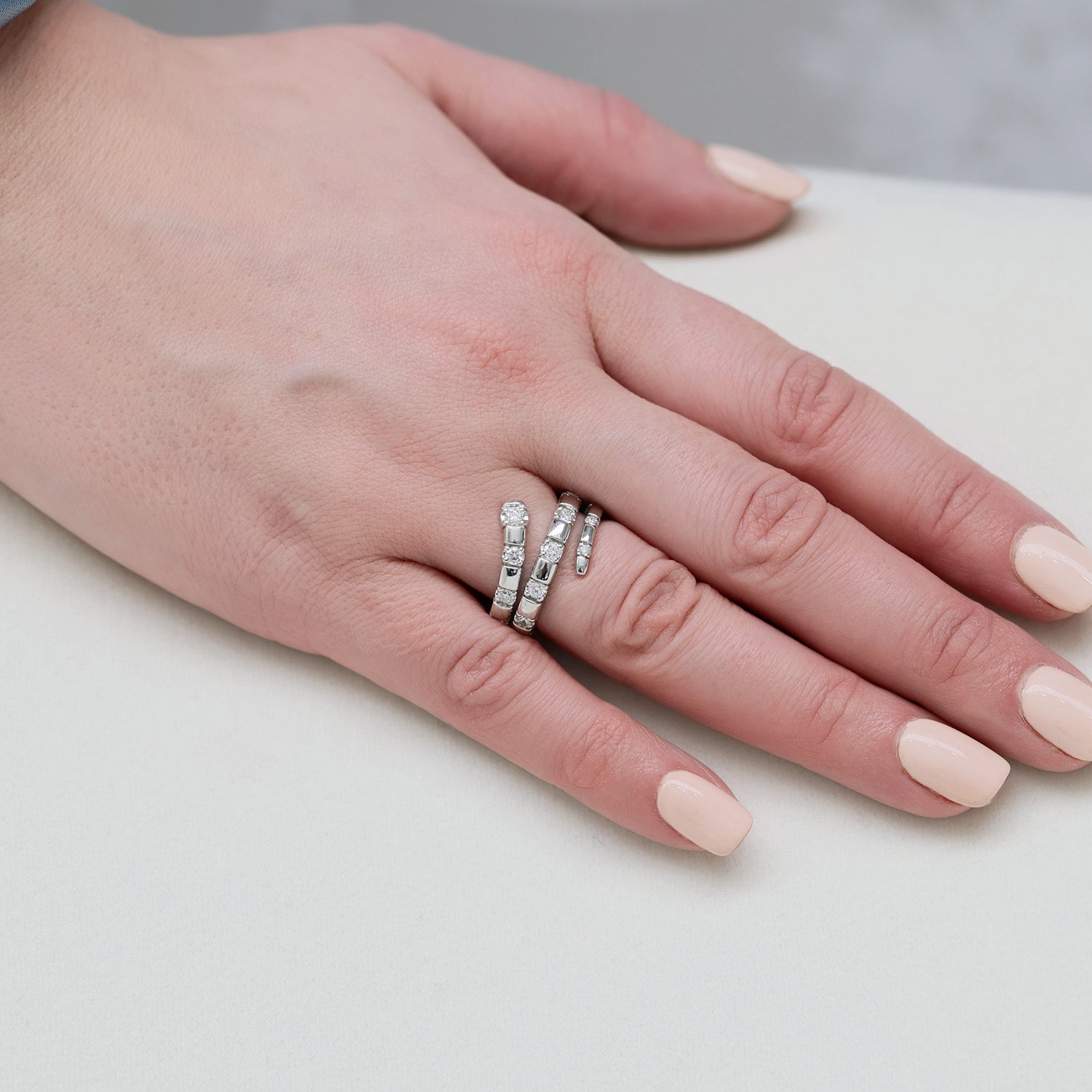 - Spiralling band of round brilliant-cut diamonds