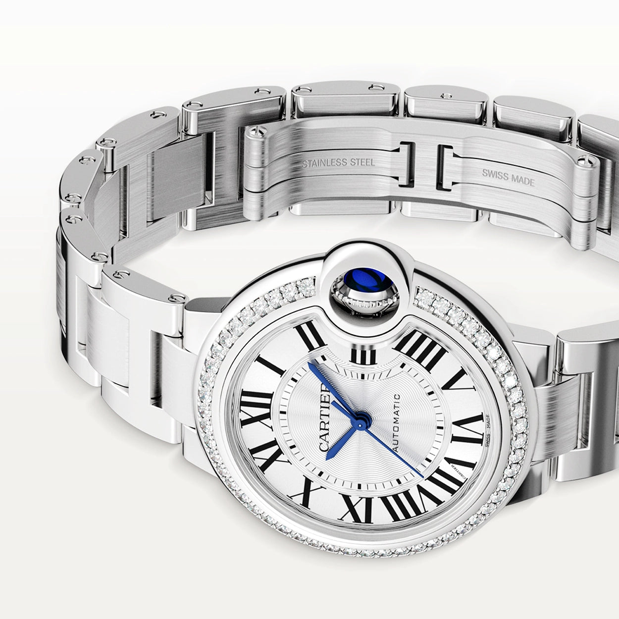 Ballon Bleu de Cartier 33mm Silver Dial Diamond Set Bezel Watch
