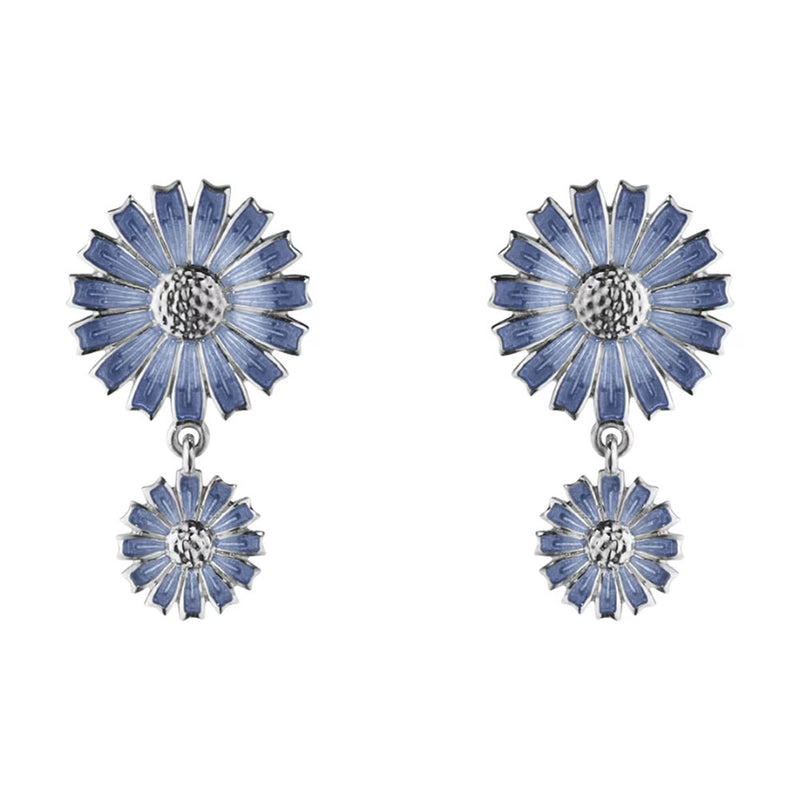 Georg Jensen Daisy Silver And Blue Enamel Double Earrings, 20001740
