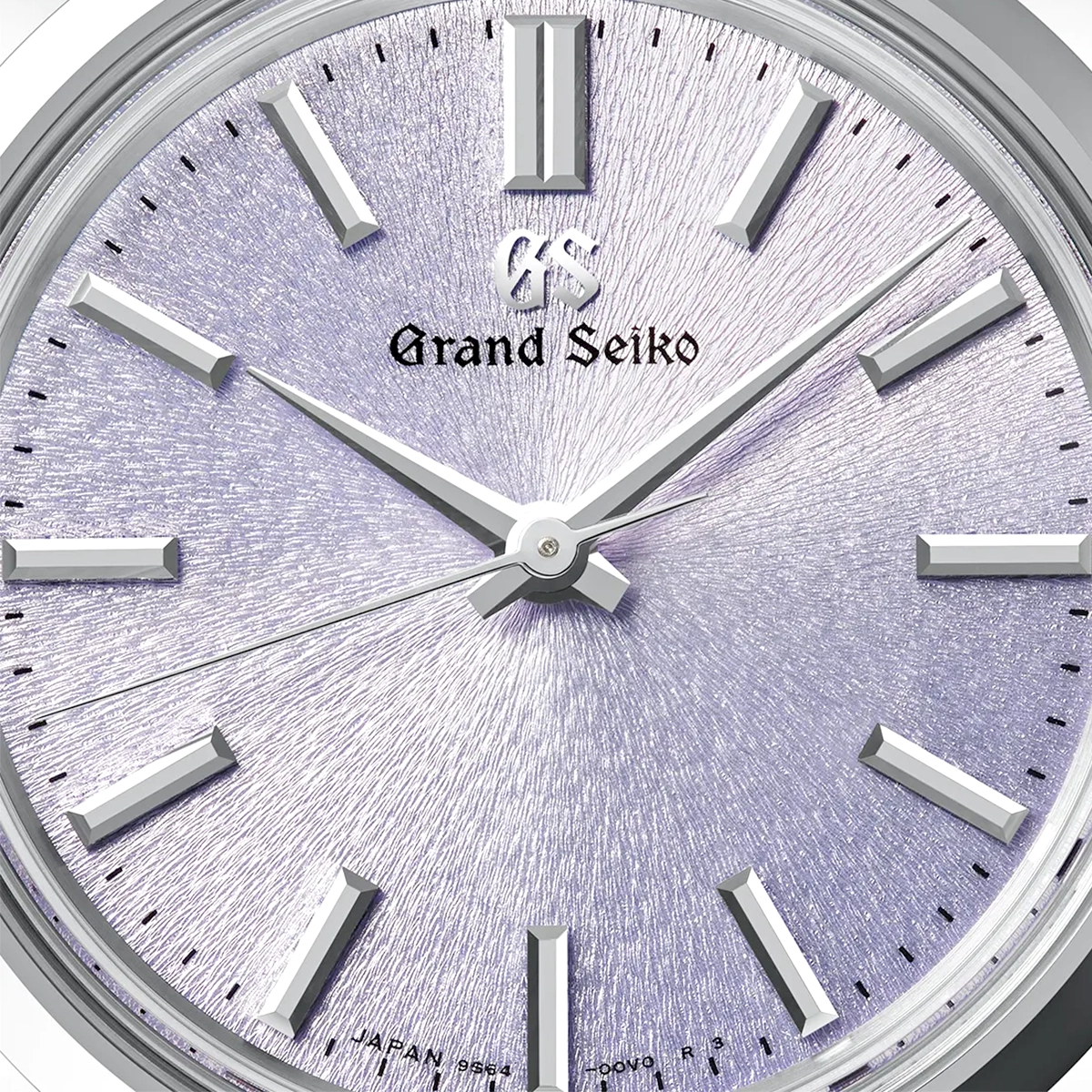 Grand Seiko Heritage 36.5mm 'Purple Kiri' Ladies Manual-Winding Bracelet Watch SBGW323. Stainless steel 36.5mm case and bezel all on a stainless steel bracelet. This watch has a light purple textured dial with polished hands and hour markers. Water resistant up to 30m and sapphire crystal glass. Power reserve up to 72 hours. 9S64 manual-wind movement.