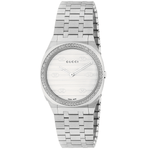 GUCCI 25H 30mm White Dial & Diamond Bezel Stainless Steel Bracelet Watch