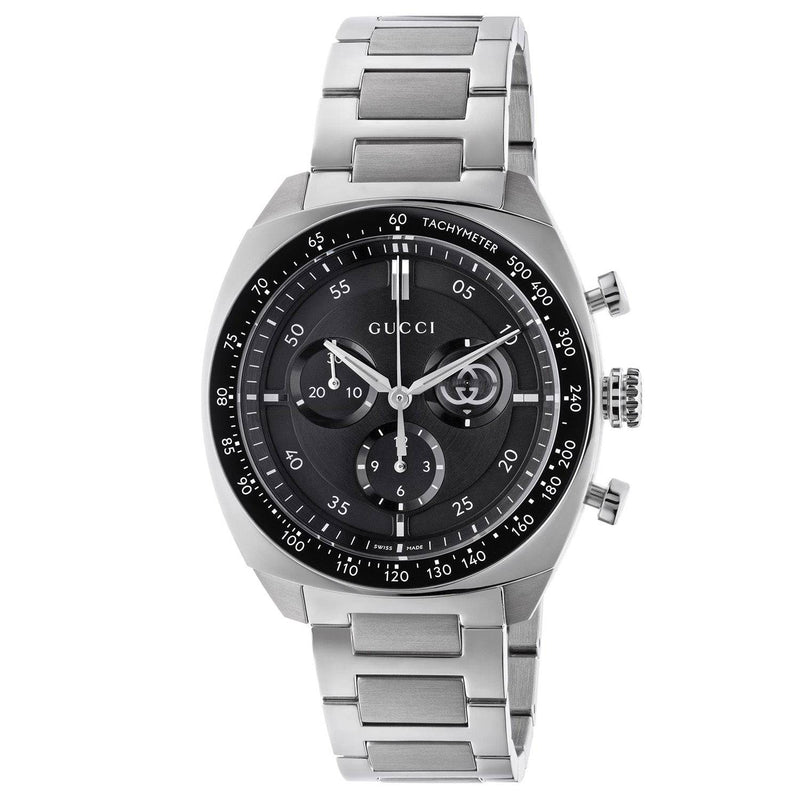 This ultra-masculine Gucci watch is the ultimate smart functional watch and has been equipped with some of the Italian fashion brand’s finest in materials and technology. The sleek instrument is bold and confident, parading the iconic branding underneath the 12 o’clock location – a feature that all Gucci watches are stamped with. A handsome black dial and fetching baton hour indexes gives the timepiece a rugged look, whilst a set of defined central hands complete the sleek aesthetics of the watch effortlessly.