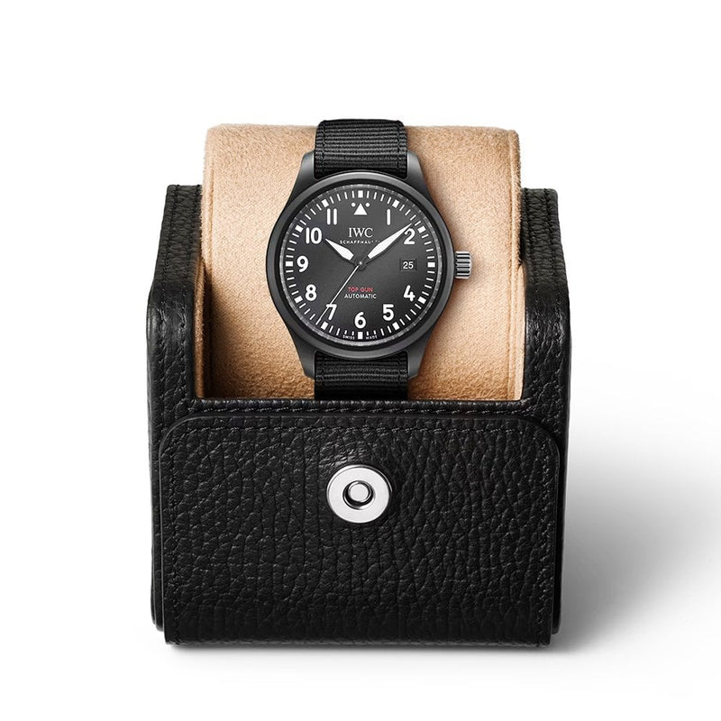 IWC Schaffhausen Pilot's 41mm Watch Automatic Top Gun IW326906. Black ceramic 41mm case and bezel all on a black textile strap. This men's watch has a black dial with luminous applied hands and hour markers as well as a date display at the 3 o'clock position. Water resistant up to 60m and sapphire crystal glass. 120 hour power reserve. Automatic movement.