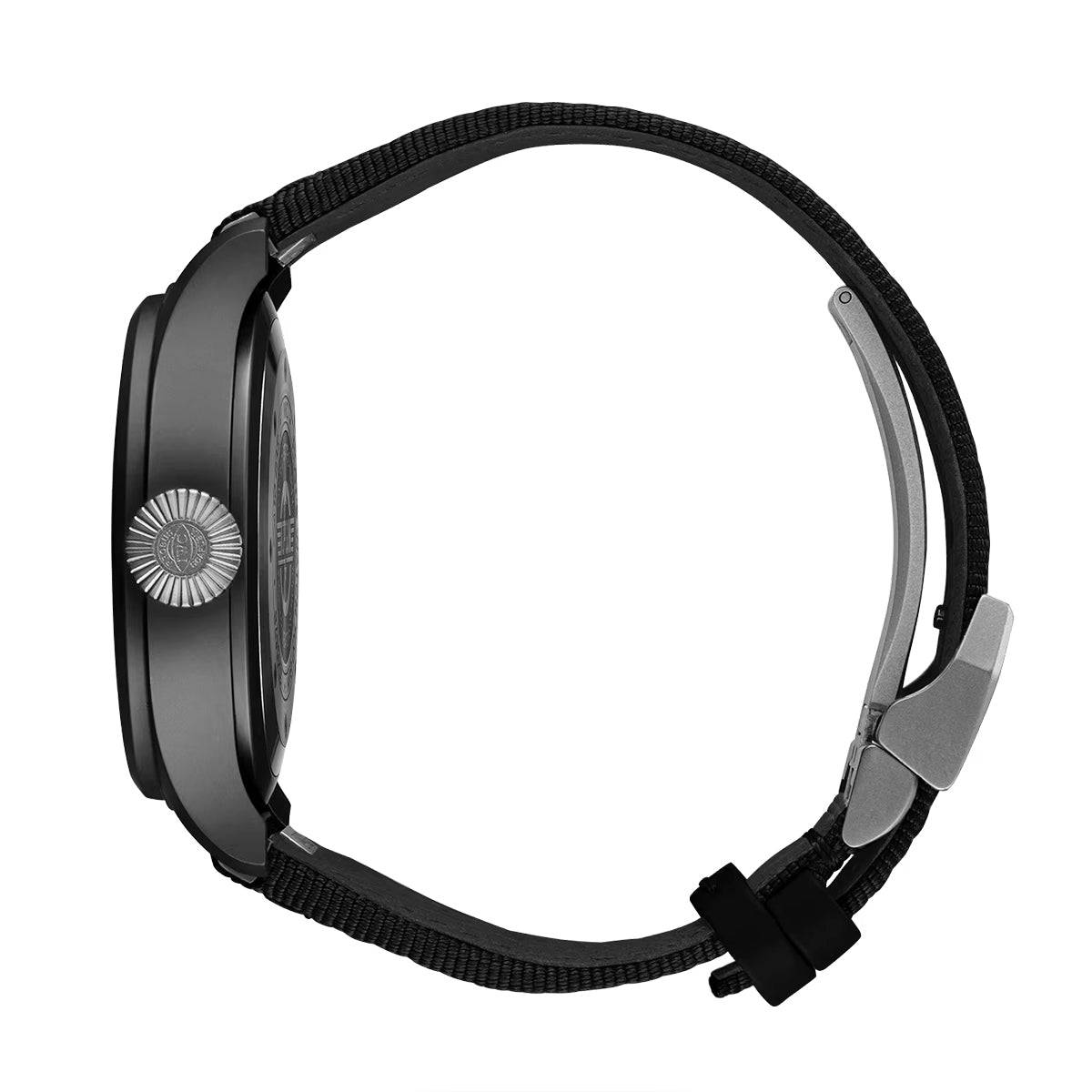 With a black ceramic case and titanium caseback, the IWC Big Pilot’s Watch Top Gun combines superior scratch-resistant qualities with lightweight properties to create a sleek silhouette for the wrist. The 43mm model Features a black dial with crisp white details that enhance legibility under dark conditions. This men’s IWC Big Pilot’s Watch Top Gun Features a special Top Gun engraving onto its caseback and the crown at 3 o’clock is also crafted from titanium. Inside this case is the IWC-manufactured 82100 calibre, which provides a 60-hour power reserve and performs at a rate of 28,800 vibrations per hour. Its 162 components are all hand-assembled and complete with beautiful Cotes de Geneve decoration. The Pellaton automatic winding movement is also protected inside a soft-iron inner cage for protection against magnetic fields. The Top Gun watch has been a staple since the year 2012. Loved for its crisp legible dial, the model Features a generous helping of luminescent material upon its Arabic numerals and tapering central hands. The triangular marker at 12 o’clock is accompanied by the signature two dots whilst a shot of red colour is afforded to the Top Gun lettering. To complete its modern pilot watch styling, the men’s IWC Big pilot’s Watch Top Gun is fitted on a black textile strap and has been integrated with the brand’s EasX-CHANGE system for effortless switching over of straps.