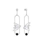 Hirondelles Clear Crystal, Onyx & Silver Drop Earrings