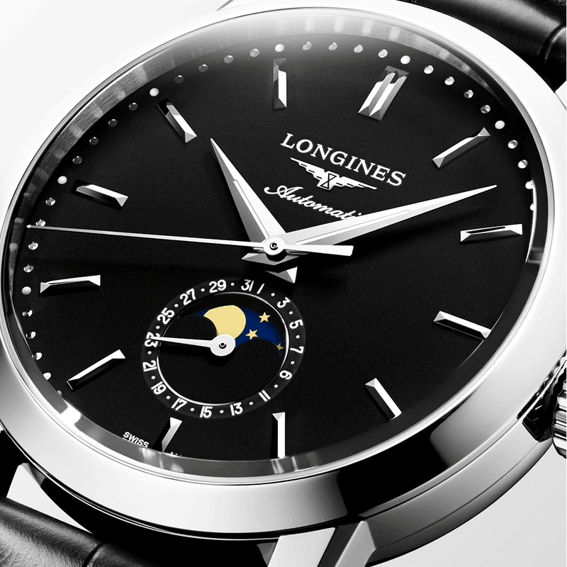 Longines 1832 40mm Black Moonphase Dial Men's Automatic Strap Watch