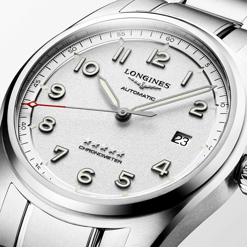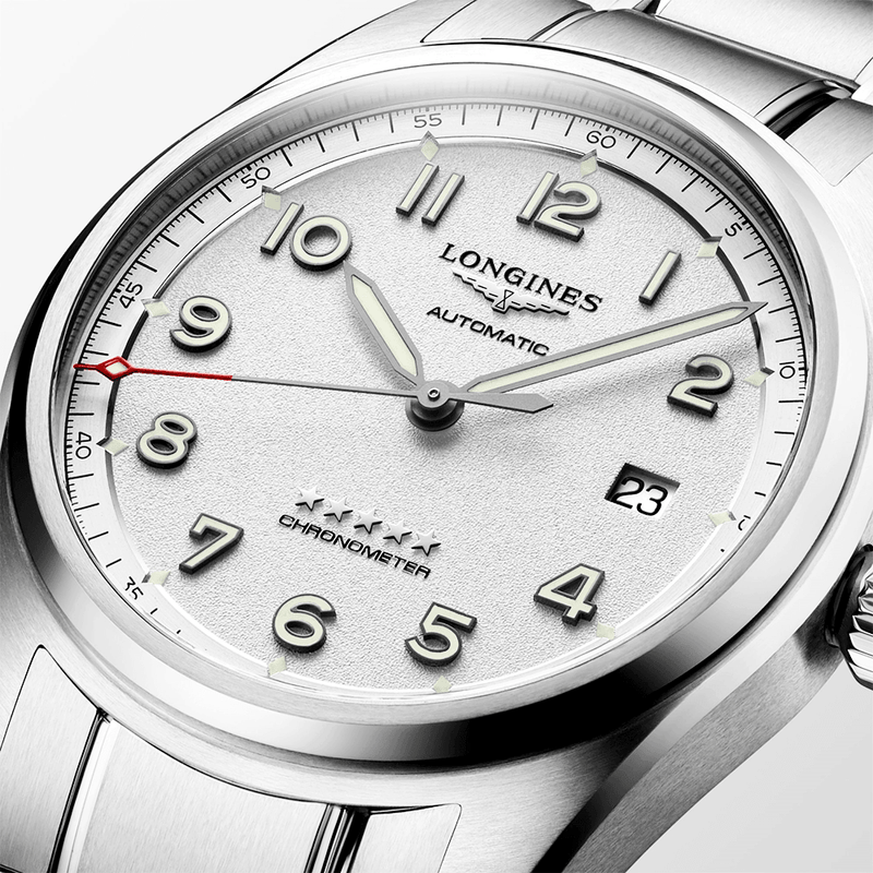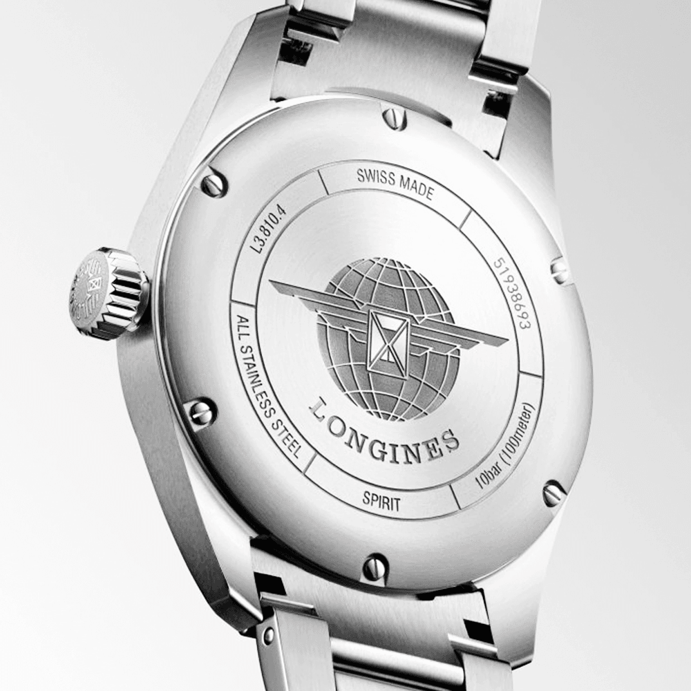 Longines Spirit watches pay homage to the Swiss brand’s contribution to the aviation industry with its precise and legible timekeeping tools. This elegant Longines Spirit watch is powered by an automatic movement and Features a clear, simple silver dial occupied by Arabic numerals around the hour track. Elegantly crafted sword-shaped central hands have been treated with Super-LumiNova material for enhanced timekeeping under low-light conditions or during the night. Other Features like an anti reflective sapphire crystal glass lens and an easy grip crown at 3 o’clock on the side of the case make this Longines Spirit watch the perfect tool to take to the skies with. A central second hand has been tipped in a red coating while at 3 o’clock a date window resides. This men’s Longines Spirit watch is powered by a self-winding movement. The L888.4 engines provides a 64-hour power reserve and performs at a rate of 25,200 vibrations per hour. The watch wraps effortlessly around the wrist with a stainless steel bracelet and foldable clasp – each link specially crafted to mould to the shape of the wearer’s wrist for maximum comfort.